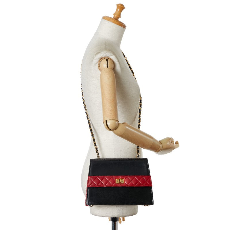 シャネル ココマーク バイカラー チェーン ショルダーバッグ ブラック レッド ゴールド レザー レディース CHANEL 【中古】