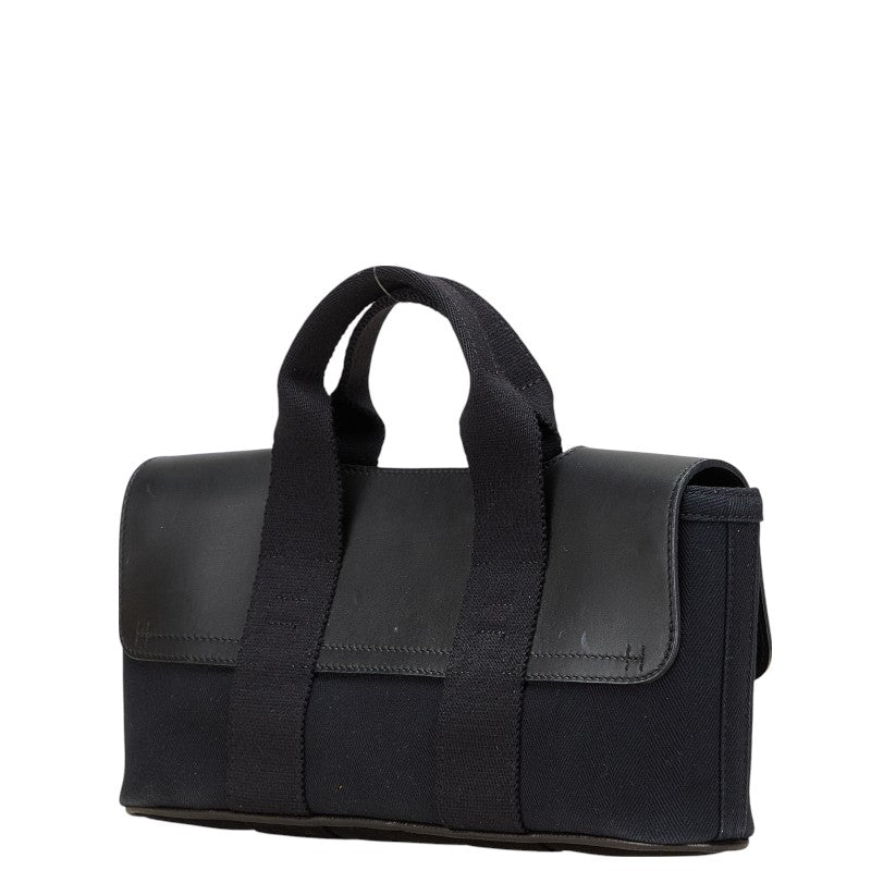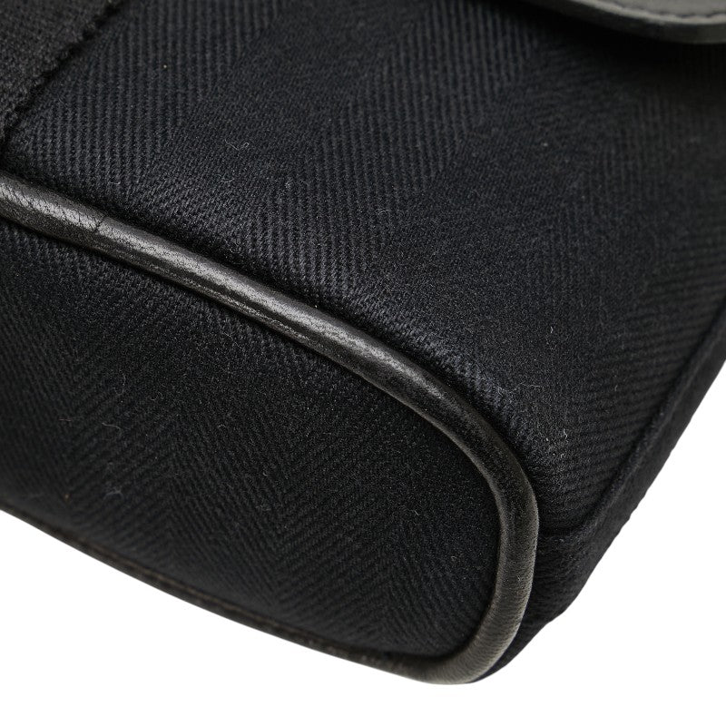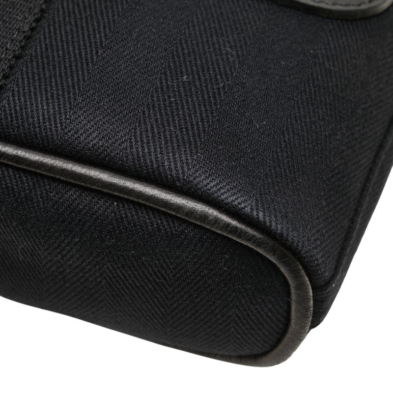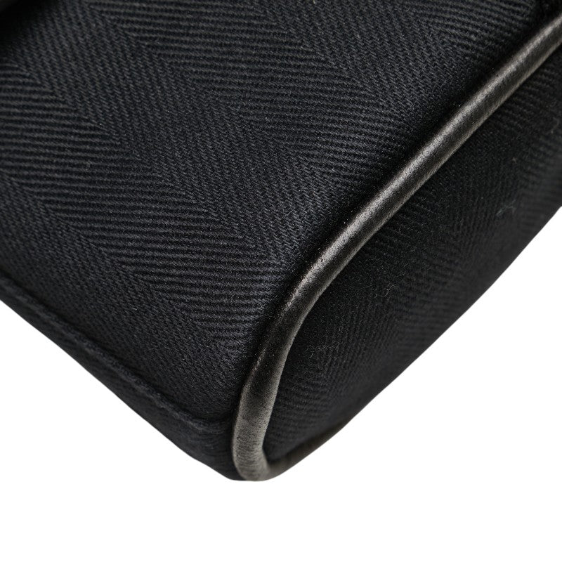 エルメス ヴァルパライソ ロングPM ハンドバッグ ブラック トワルシェブロン レザー レディース HERMES 【中古】