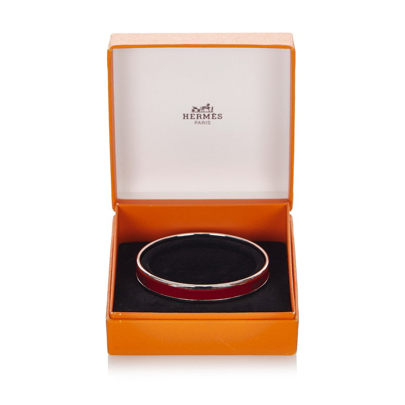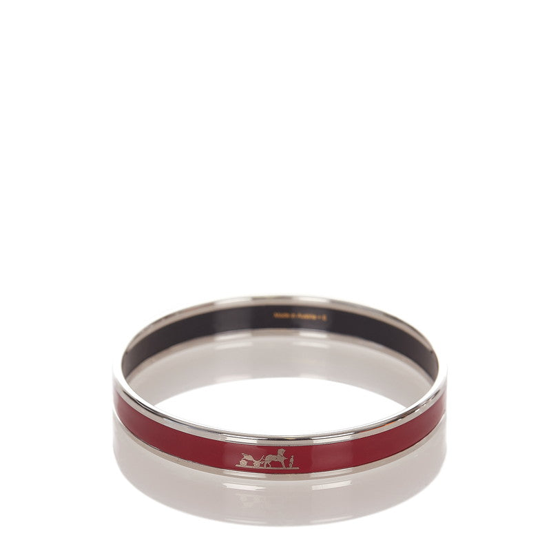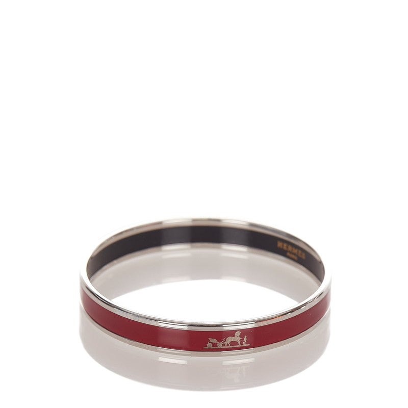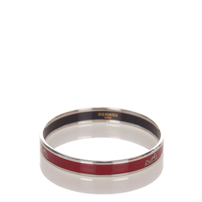 エルメス ワインレッド シルバー メタル エマイユ バングル レディース HERMES 【中古】