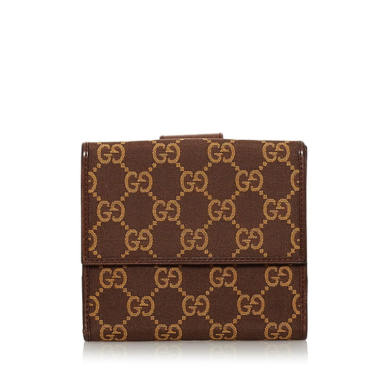 グッチ GGキャンバス 035 3661 ブラウン キャンバス レザー 二つ折り財布 レディース GUCCI 【中古】