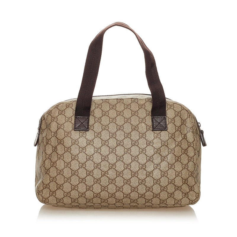 グッチ GGスプリーム 140959 ベージュ PVC レザー ハンドバッグ レディース GUCCI 【中古】