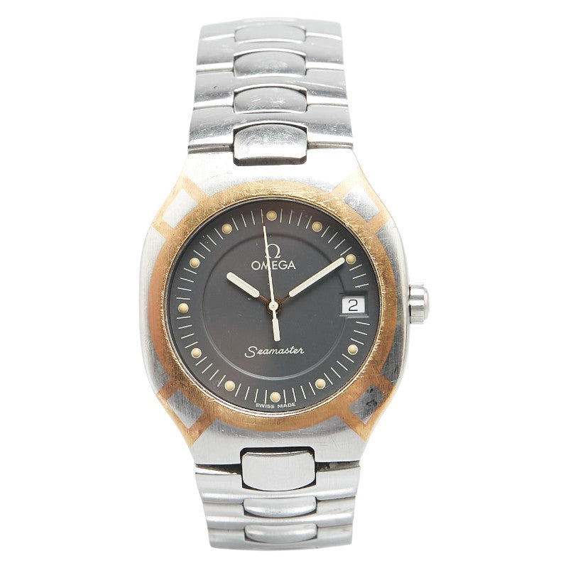 オメガ シーマスター ポラリス 腕時計 2510.40 クオーツ グレー文字盤 ステンレススチール イエローゴールド メンズ OMEGA 【中古】