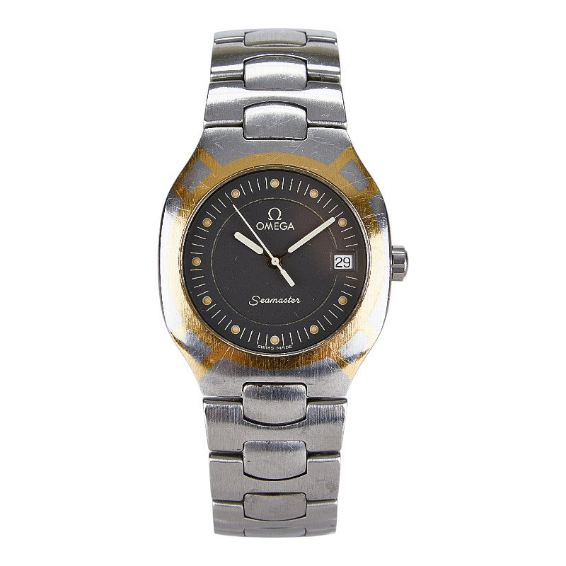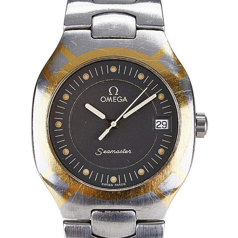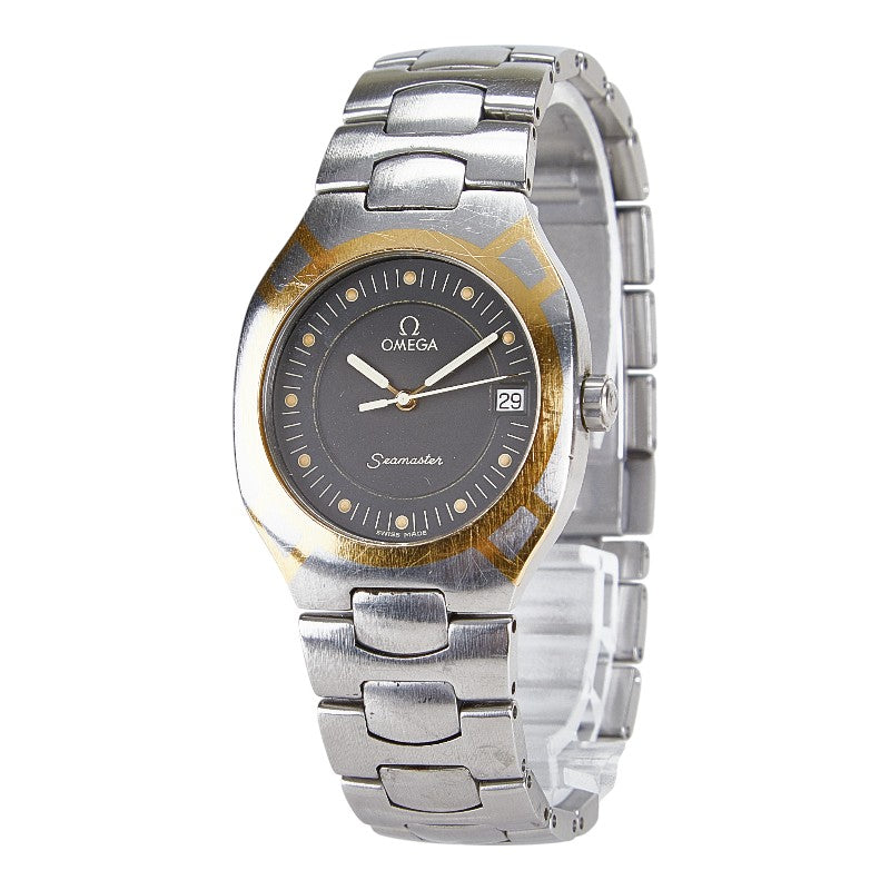 オメガ シーマスター ポラリス デイト 腕時計 2510.40 クオーツ グレー文字盤 ステンレススチール イエローゴールド メンズ OMEGA 【中古】
