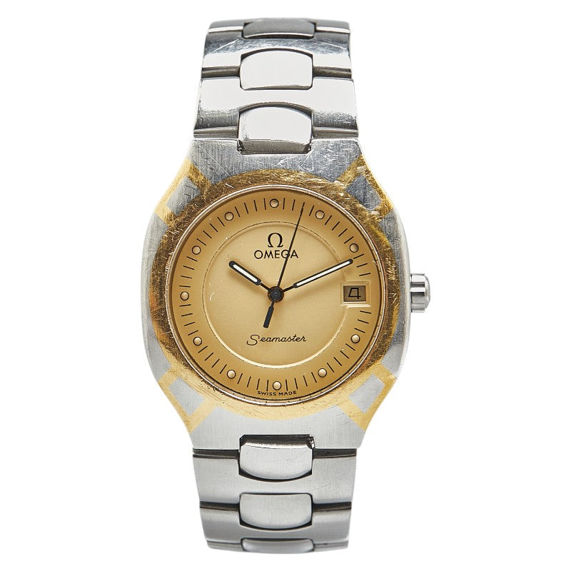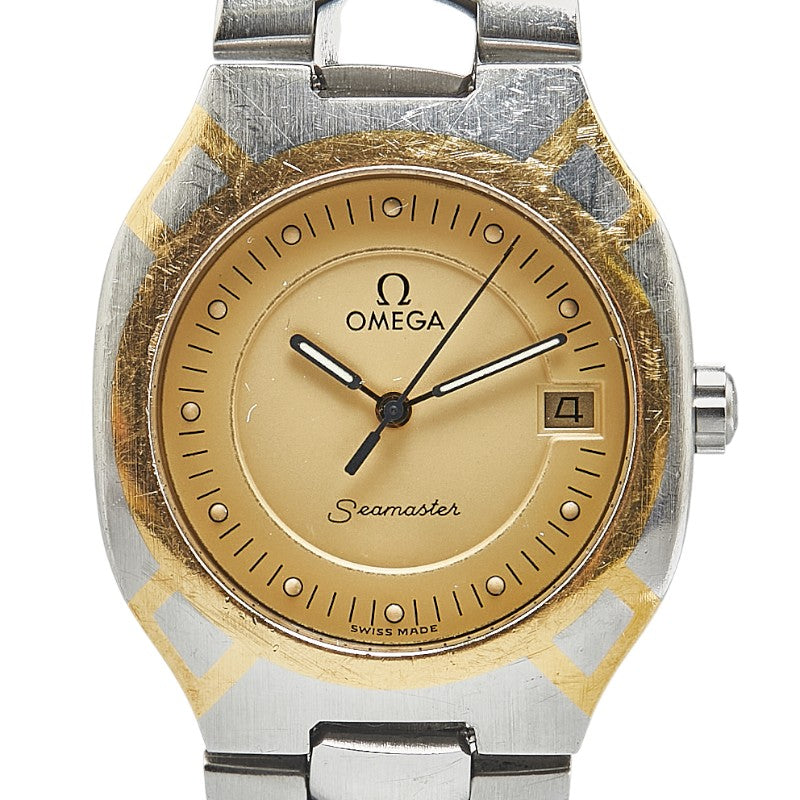 オメガ シーマスター ポラリス 腕時計 クオーツ ゴールド文字盤 ステンレススチール イエローゴールド レディース OMEGA 【中古】