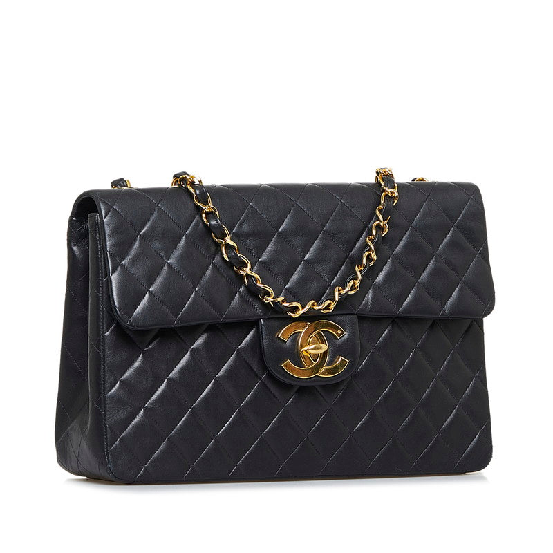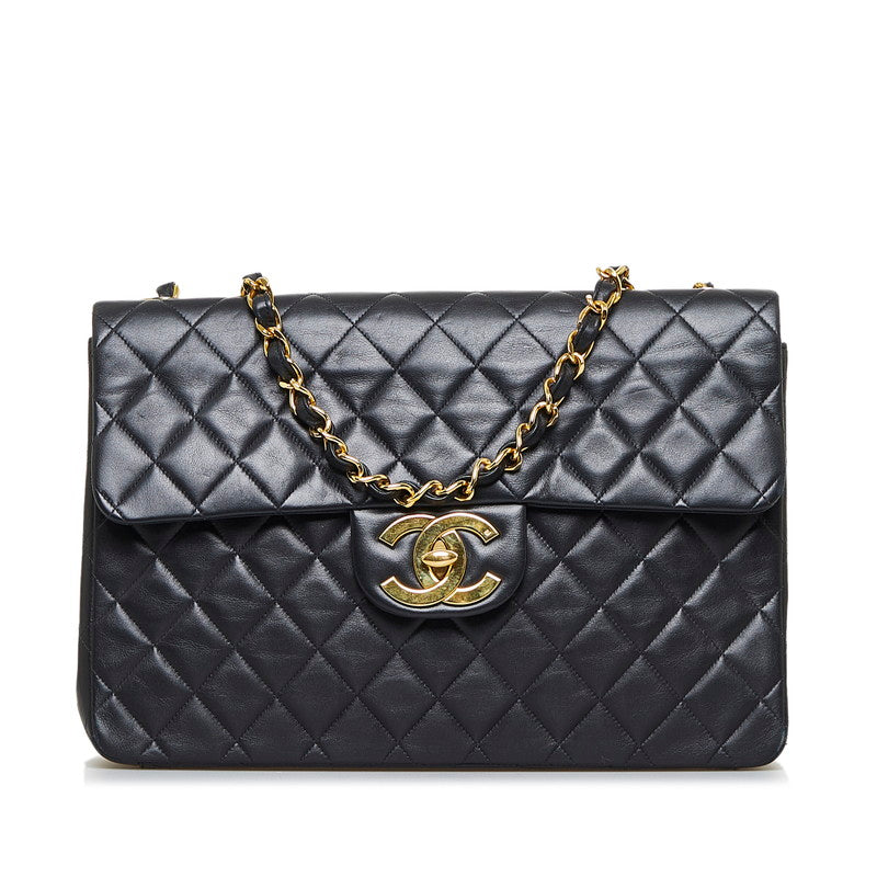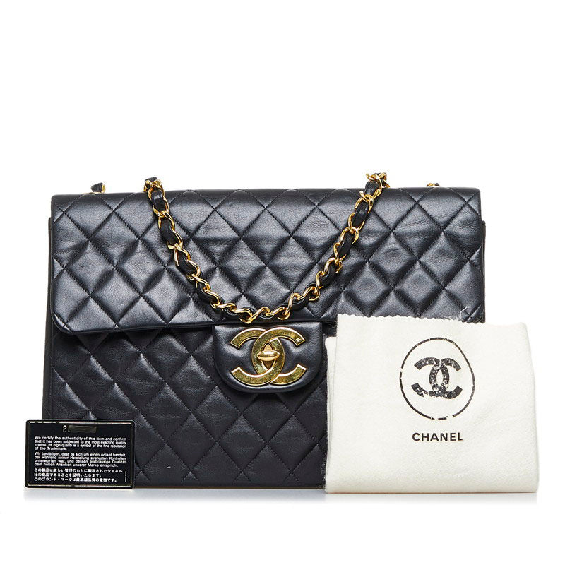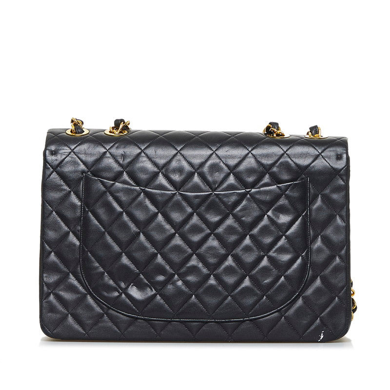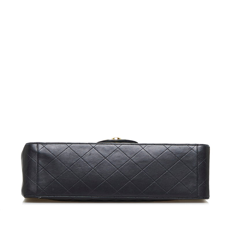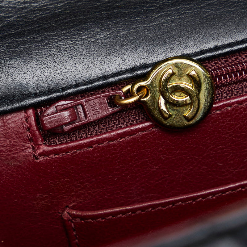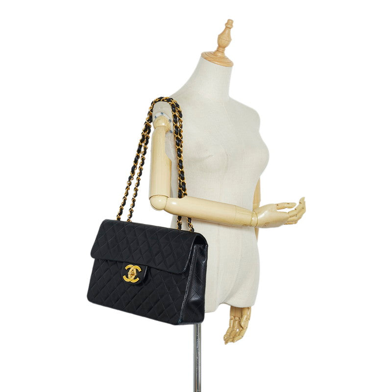 シャネル デカマトラッセ シングルフラップ ゴールド金具 ダブルチェーン ショルダーバッグ ブラック ラムスキン レディース CHANEL 【中古】
