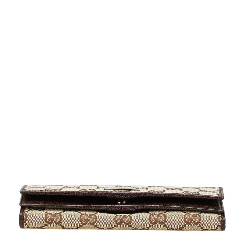 グッチ GGキャンバス 長財布 131888 ベージュ ブラウン キャンバス レザー レディース GUCCI 【中古】
