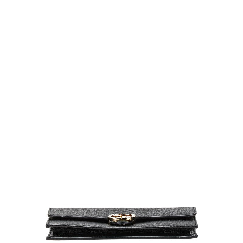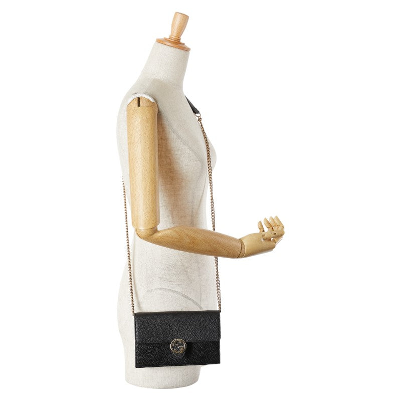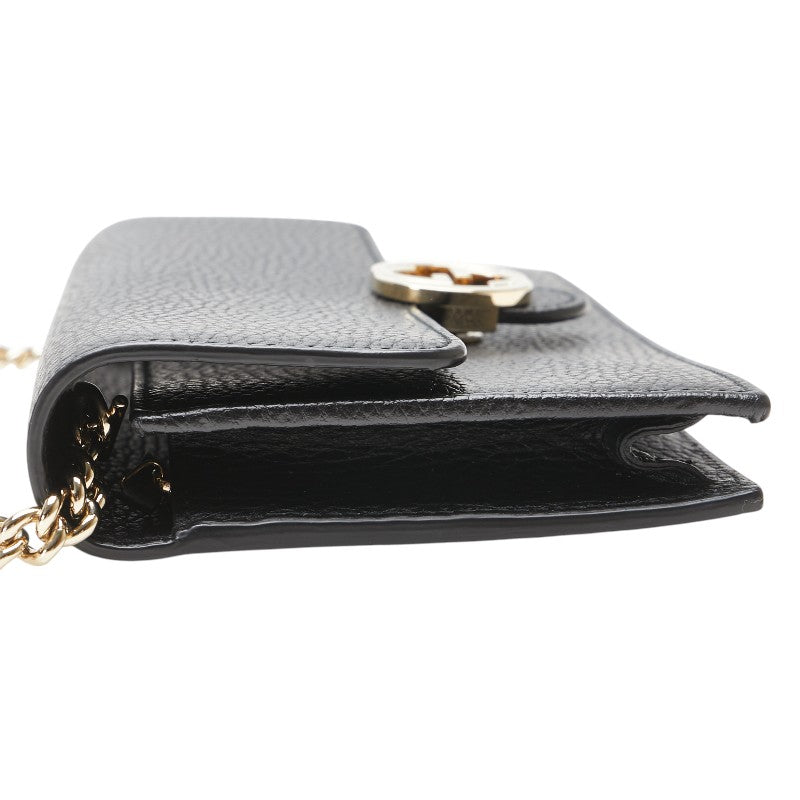 グッチ インターロッキングG チェーンウォレット ショルダーバッグ 510314 ブラック ゴールド レザー レディース GUCCI 【中古】