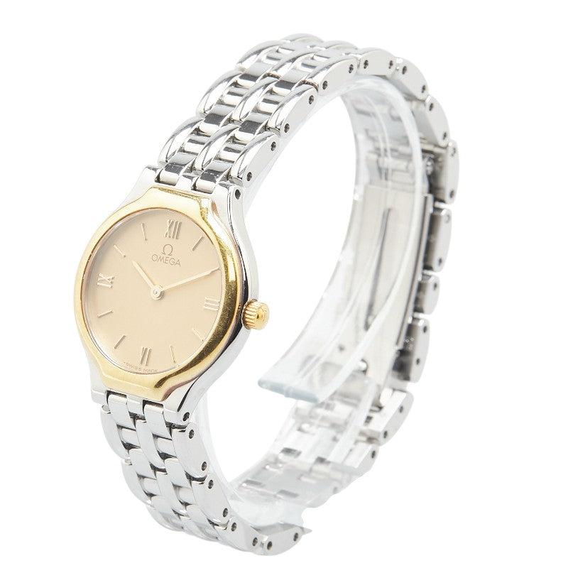 オメガ デビル 腕時計 クオーツ ゴールド文字盤 ステンレススチール イエローゴールド レディース OMEGA 【中古】