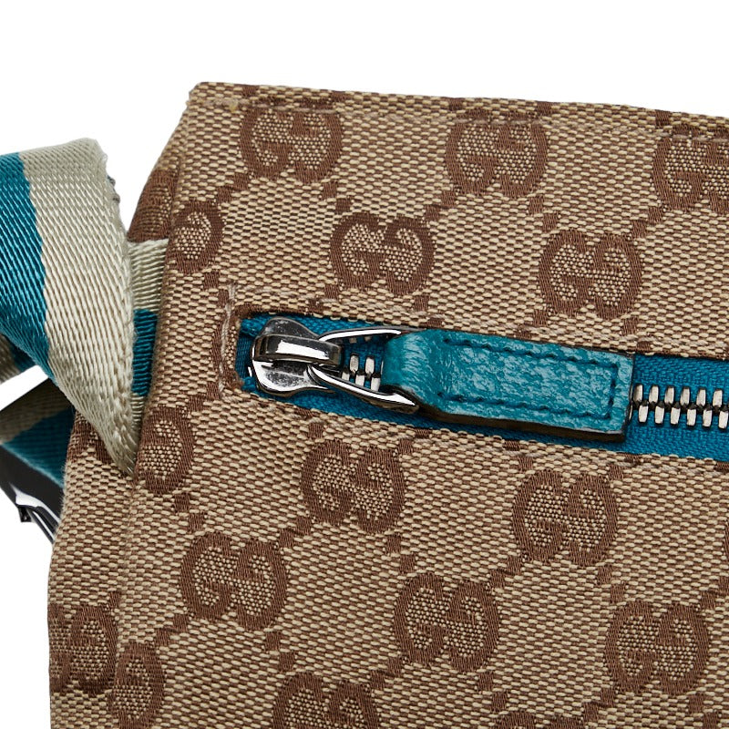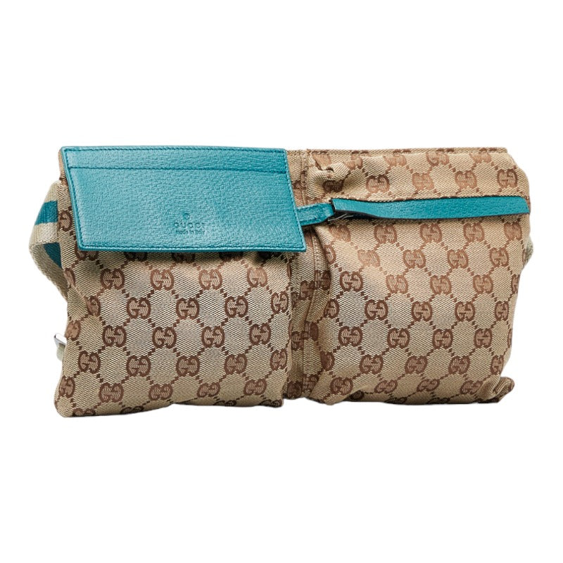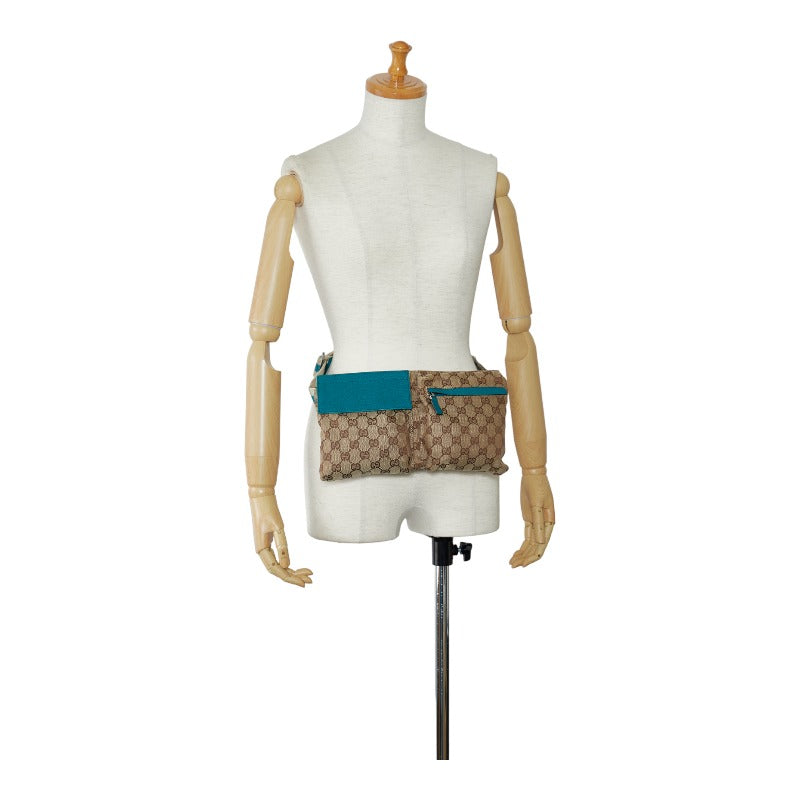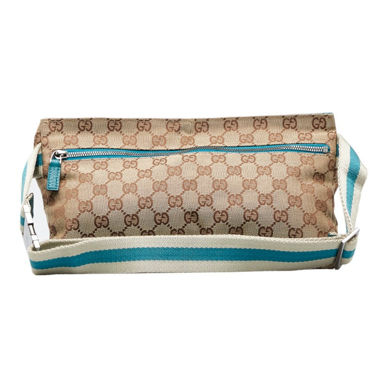 グッチ GGキャンバス ボディバッグ ウエストバッグ 28566・0959 ベージュ ターコイズブルー キャンバス レザー レディース GUCCI 【中古】
