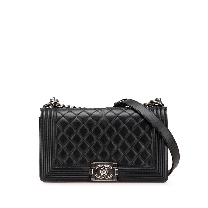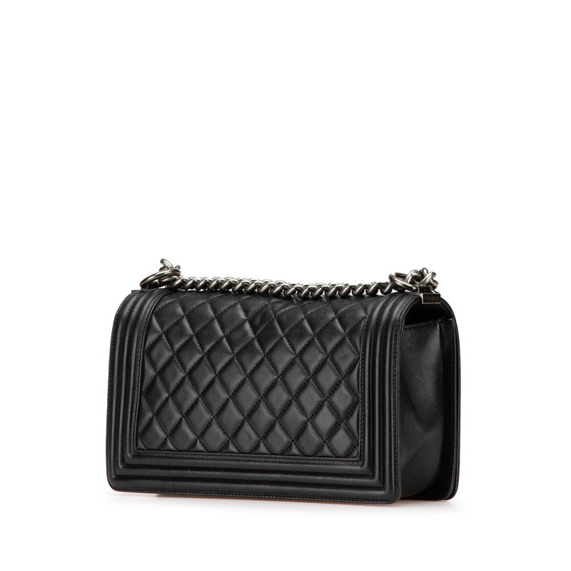 シャネル ココマーク マトラッセ ボーイシャネル25 斜め掛け チェーン ショルダーバッグ ブラック ラムスキン レディース CHANEL 【中古】