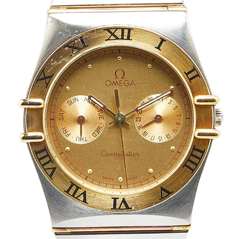 オメガ コンステレーション 腕時計 クオーツ ゴールド文字盤 ステンレススチール イエローゴールド レディース OMEGA 【中古】