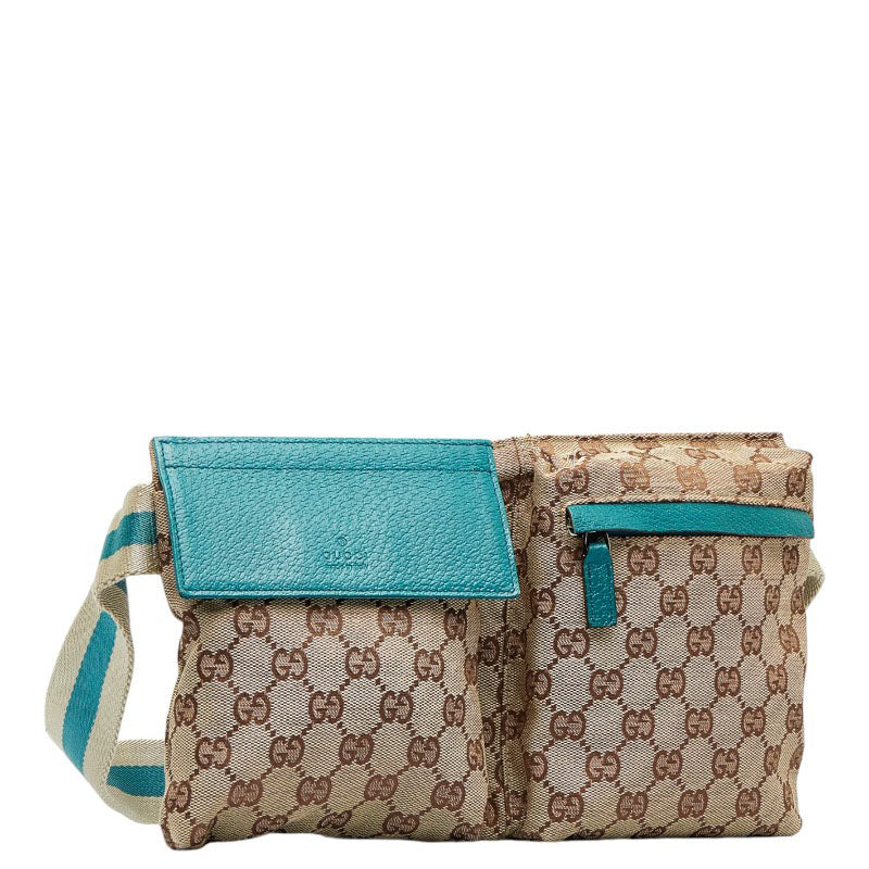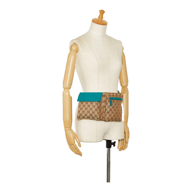 グッチ GGキャンバス ボディバッグ ウエストバッグ 28566 ベージュ グリーン キャンバス レザー レディース GUCCI 【中古】