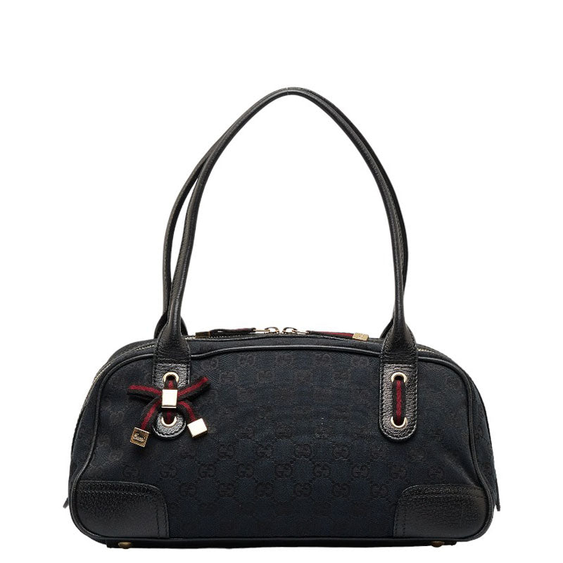 グッチ GGキャンバス プリンシー シェリーライン ハンドバック ショルダーバッグ 161720 ブラック キャンバス レザー レディース GUCCI 【中古】