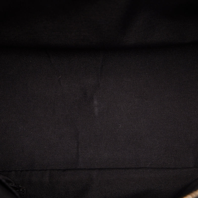 外側⇒型崩れ・キャンバスにスレ・薄汚れ・若干の色あせ、レザーとパイピングにスレ・ヤケ 底面⇒型崩れ・レザーにスレ・シワ・角スレ・角パイピングに一部破れ ハンドル⇒ヨレ・スレ・全体的にヤケ・付け根にシワ、コバひび割れ・コバはがれ 金具⇒キズ・クスミ・メッキはがれ・底鋲にキズ 開閉口⇒レザーにスレ・全体的にヤケ 内側⇒メインとポケットにスレ・薄汚れ、底面中央に目立つシワ、オープンポケットフチに若干のはがれ |