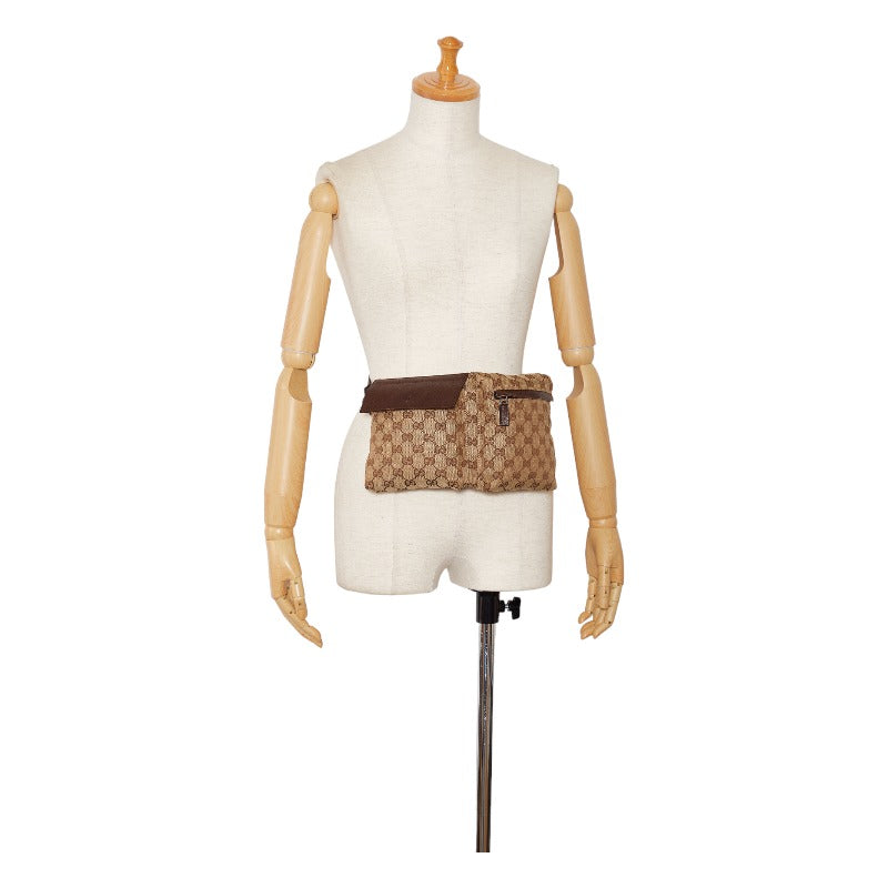 グッチ GGキャンバス ウエストバッグ ボディバッグ 28566 ベージュ ブラウン キャンバス レザー レディース GUCCI 【中古】