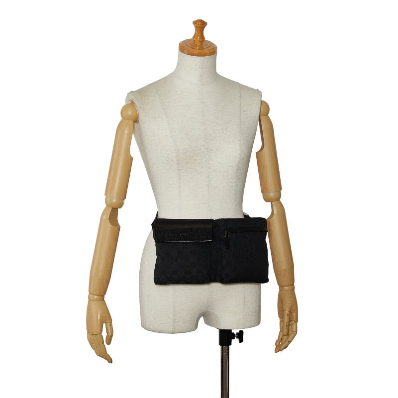 グッチ GGキャンバス ボディバッグ ウエストバッグ 28566 ブラック キャンバス レザー レディース GUCCI 【中古】