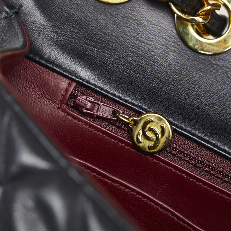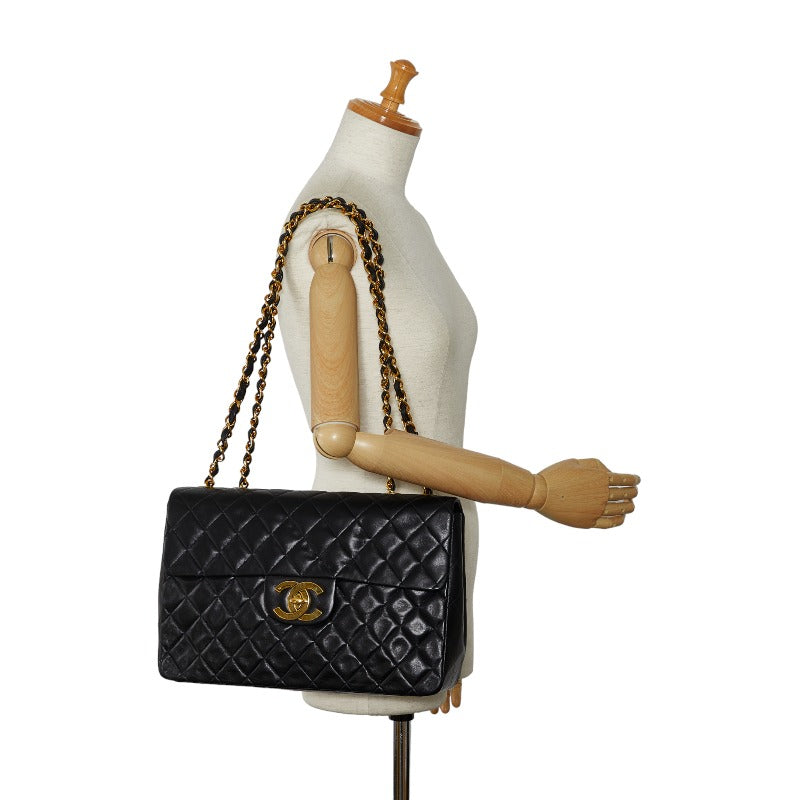 シャネル デカマトラッセ チェーン ショルダーバッグ ブラック ゴールド ラムスキン レディース CHANEL 【中古】