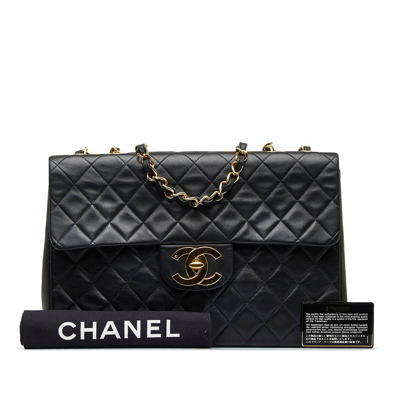 シャネル デカマトラッセ33 ココマーク シングルフラップ チェーン ショルダーバッグ ブラック ラムスキン レディース CHANEL 【中古】