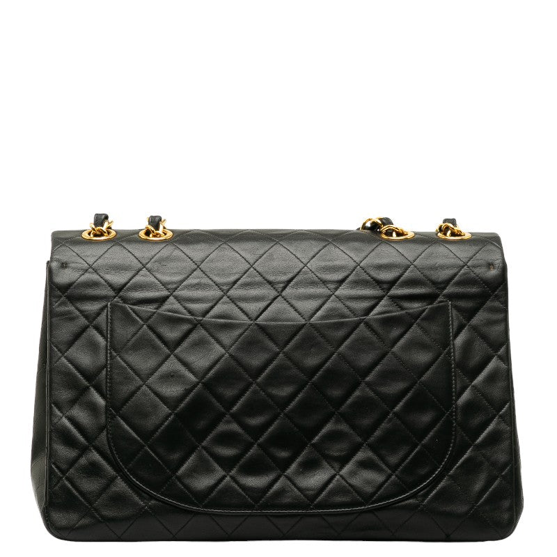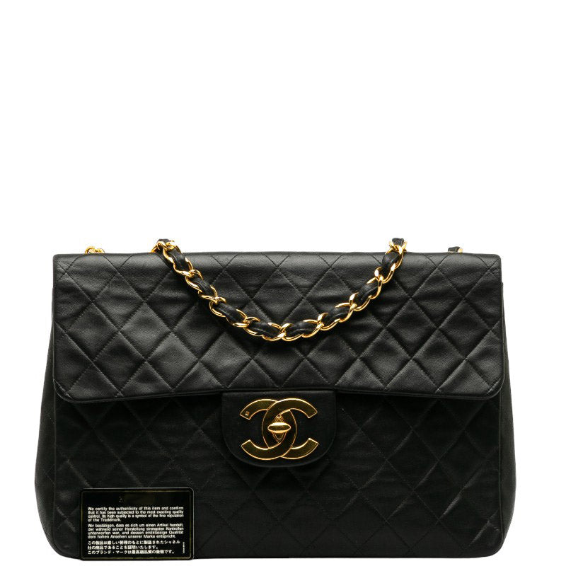 シャネル デカマトラッセ33 ココマーク シングルフラップ チェーン ショルダーバッグ ブラック ラムスキン レディース CHANEL 【中古】