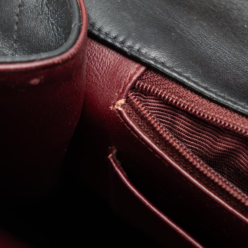 外側⇒型崩れ・複数のキズ・スレ・ヤケ・汚れ・角スレ ショルダー⇒スレ・ヤケ・所々に亀裂・破れ・糸ほつれ 金具⇒キズ・変色 フラップ付け根・裏⇒キズ・スレ・汚れ 開閉口⇒スレ・汚れ 内側⇒キズ・スレ・汚れ・アタリ跡、ポケットフチに若干の破れ におい⇒保管臭 |