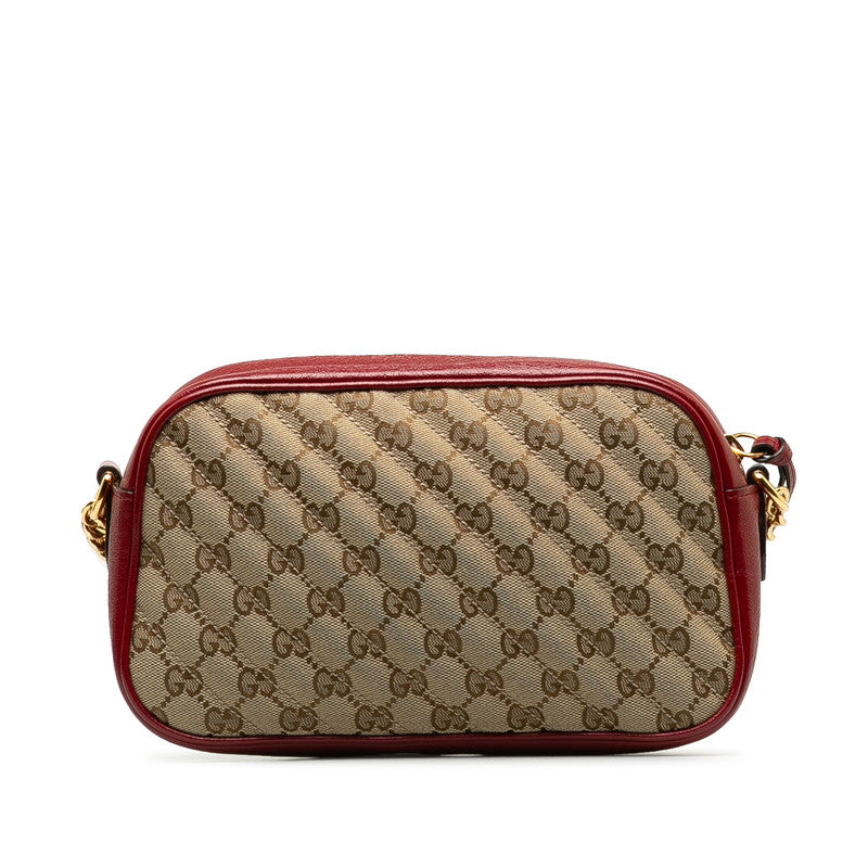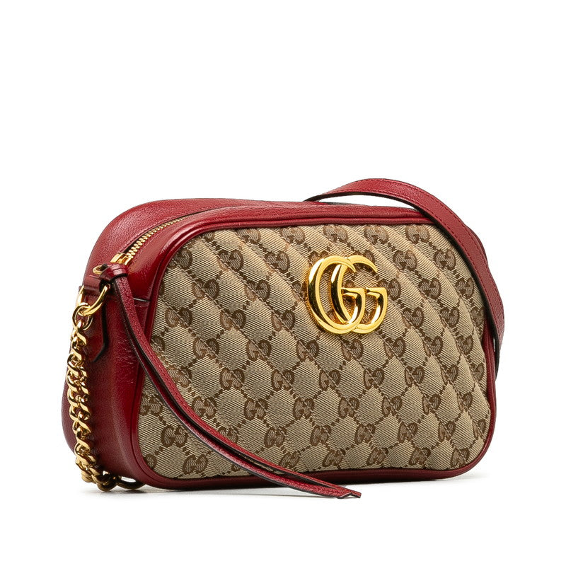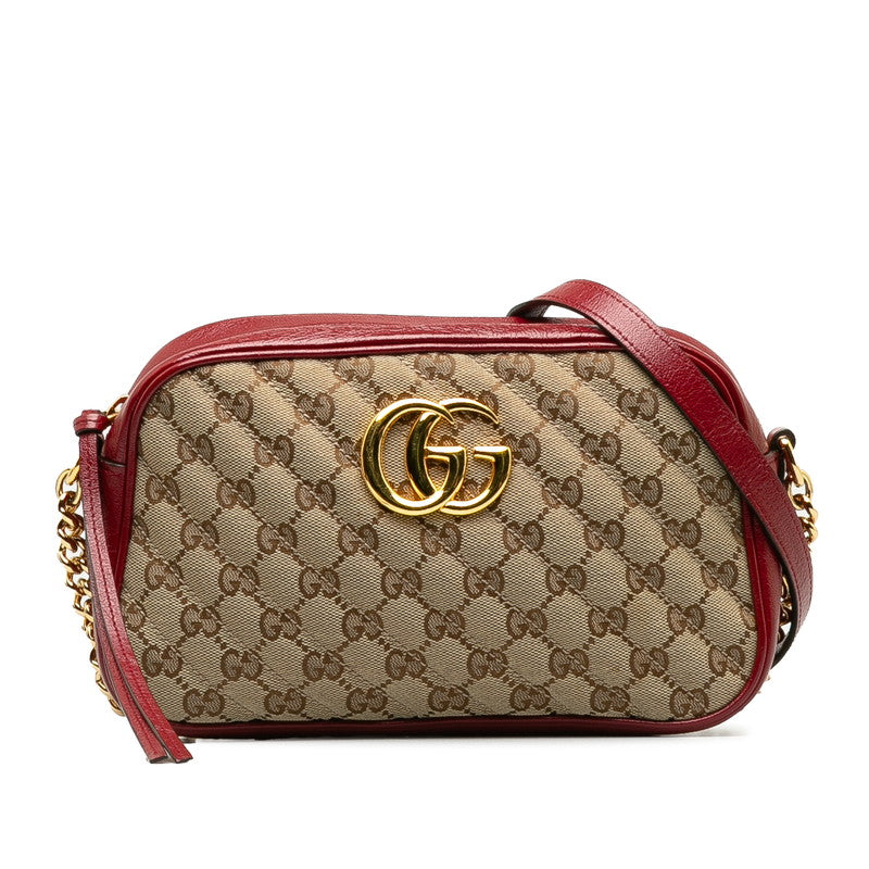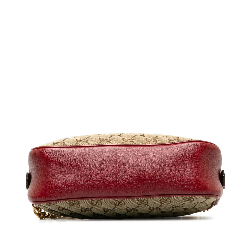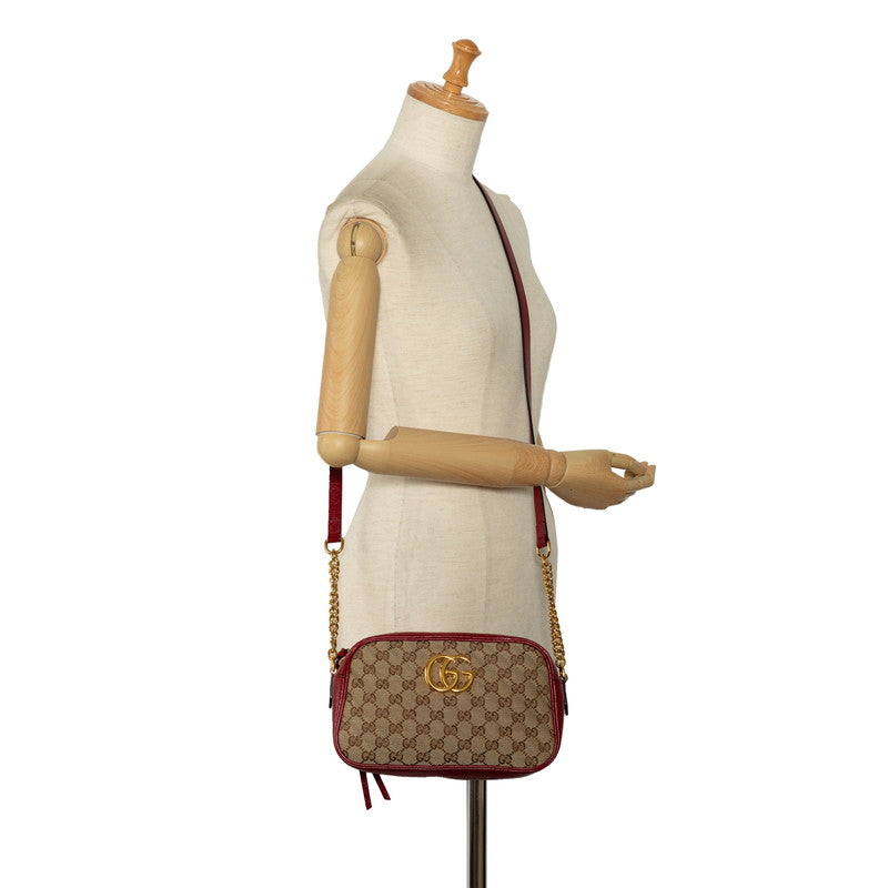 グッチ GGキャンバス GGマーモント 斜め掛け チェーン ショルダーバッグ 447632 ベージュ レッド キャンバス レザー レディース GUCCI 【中古】