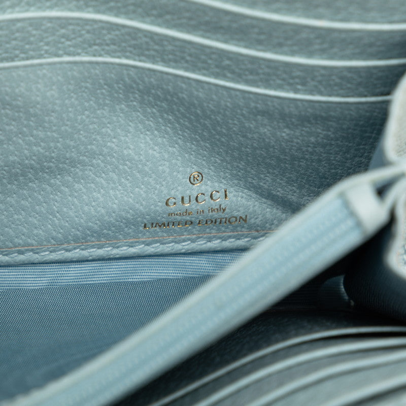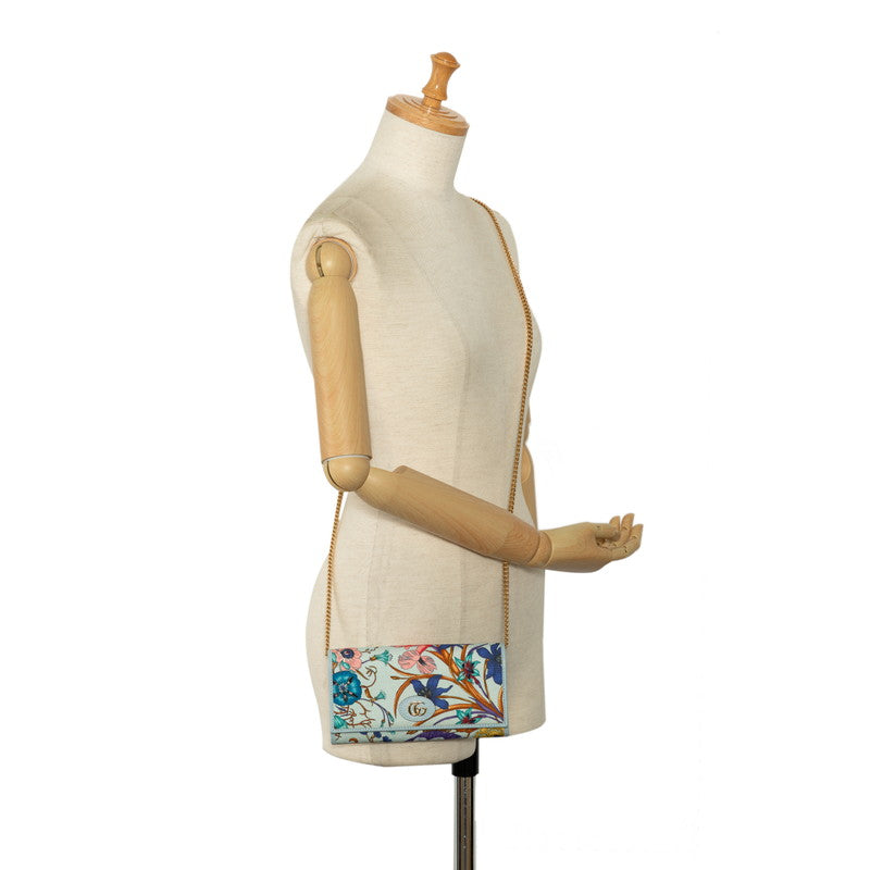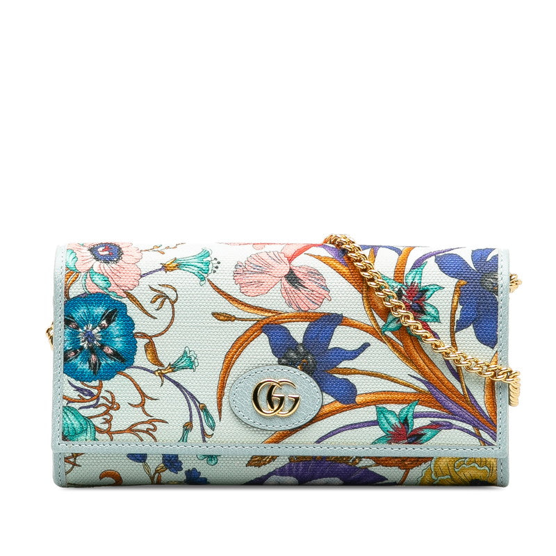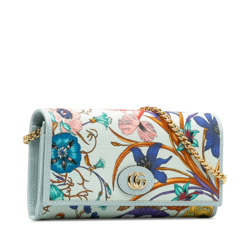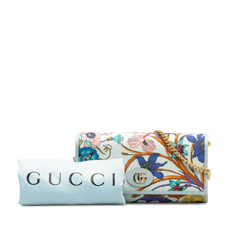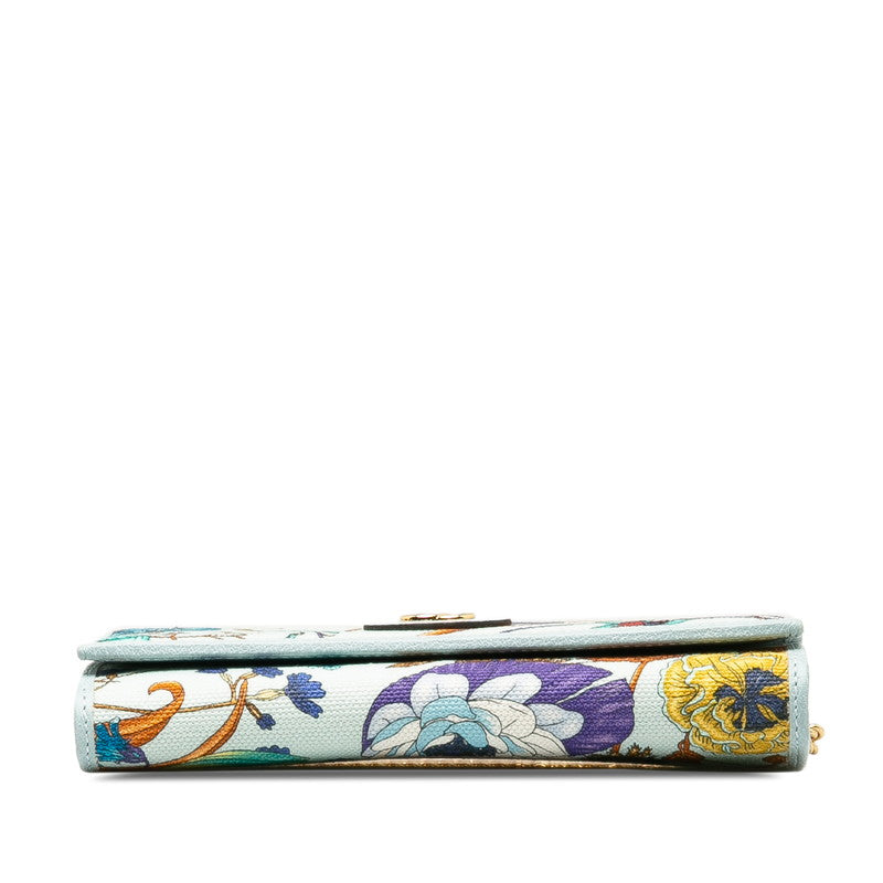 グッチ GGマーモント フローラプリント フラワー 花 チェーンショルダーウォレット 577343 ライトブルー マルチカラー キャンバス レザー レディース GUCCI 【中古】