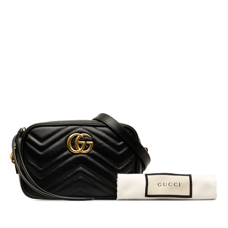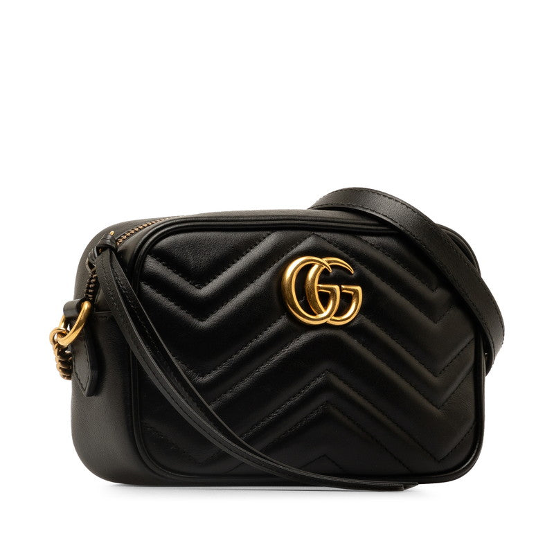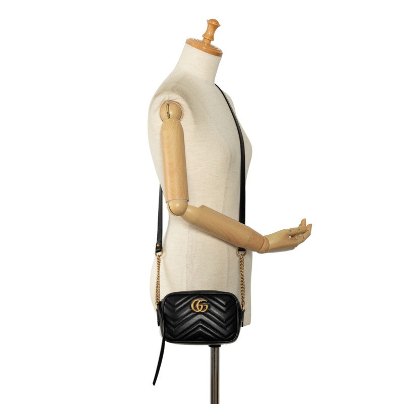 グッチ GGマーモント キルティング 斜め掛け ミニ ショルダーバッグ 448065 ブラック レザー レディース GUCCI 【中古】