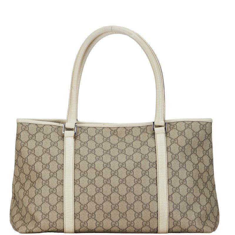 グッチ GGスプリーム ハンドバッグ トートバッグ 114595 ベージュ ホワイト PVC レザー レディース GUCCI 【中古】
