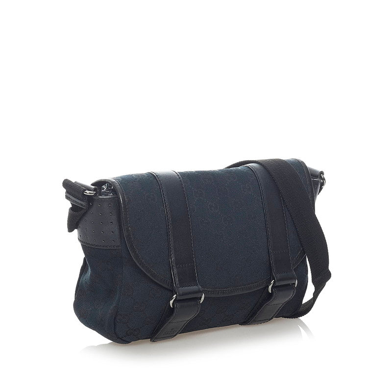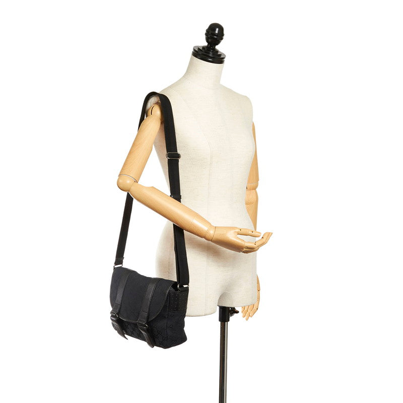 グッチ GGキャンバス 斜め掛け ショルダーバッグ 145848 ブラック レザー キャンバス レディース GUCCI 【中古】