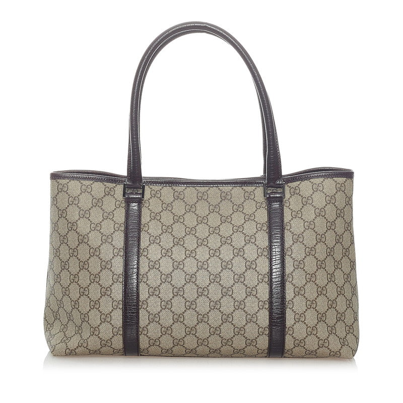 グッチ GGスプリーム トートバッグ 114595 ベージュ ブラウン PVC レザー レディース GUCCI 【中古】