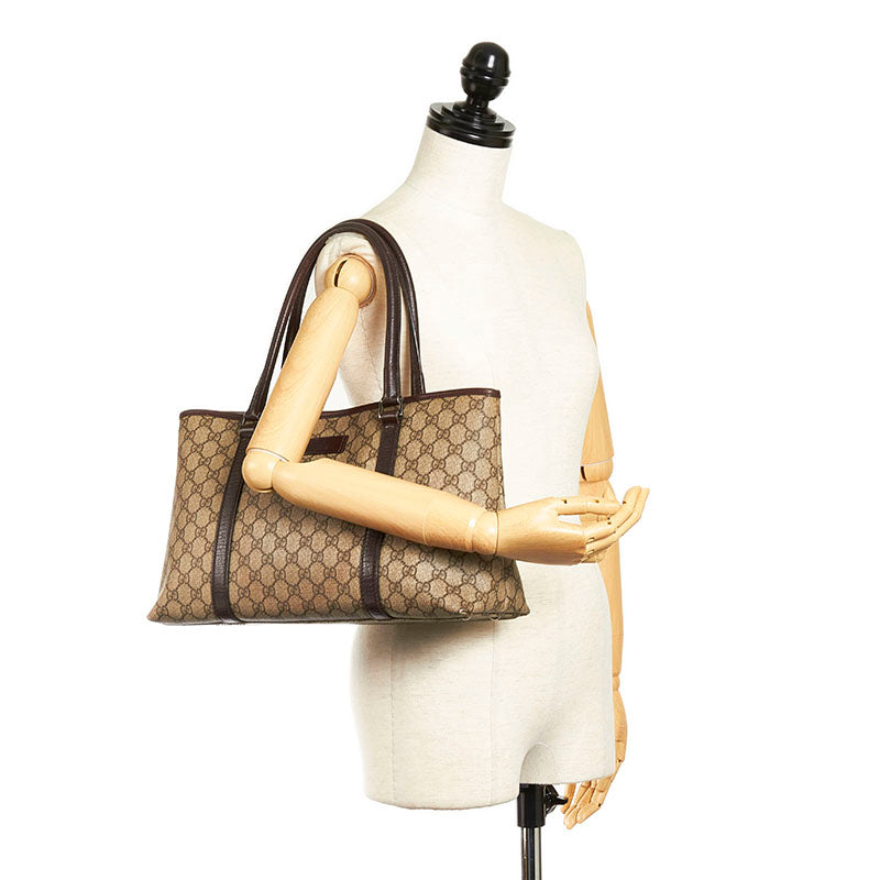 グッチ GGスプリーム ハンドバッグ トートバッグ 114595 ベージュ ブラウン PVC レザー レディース GUCCI 【中古】