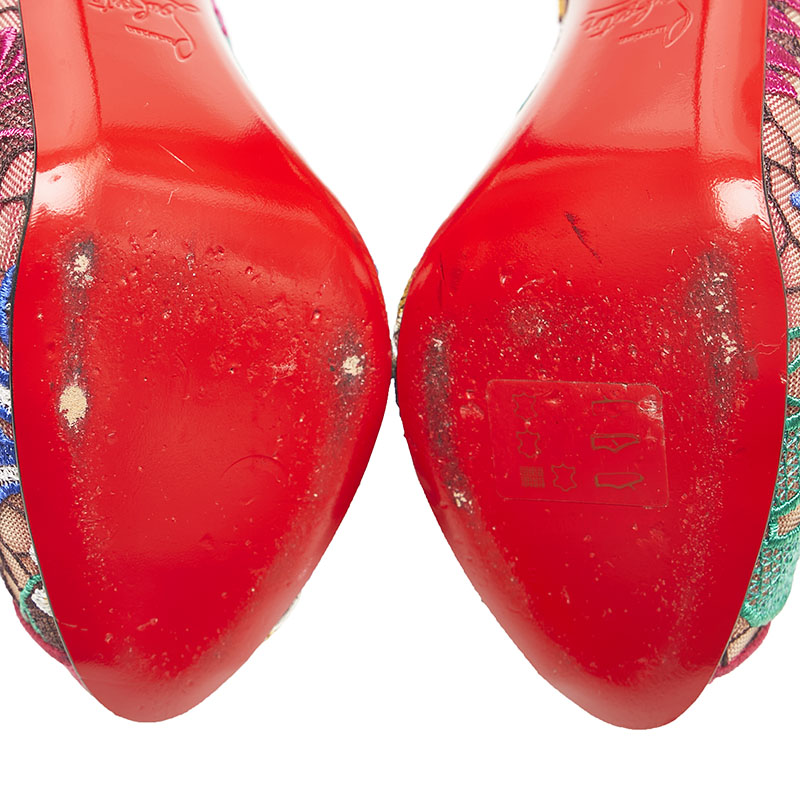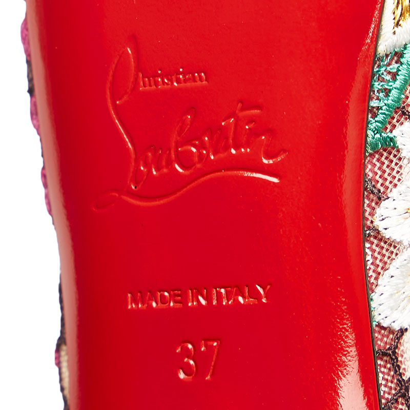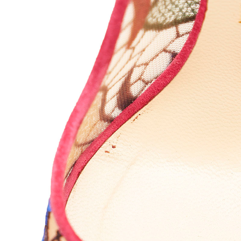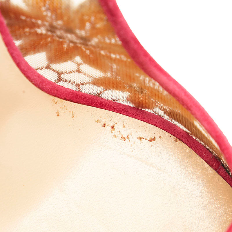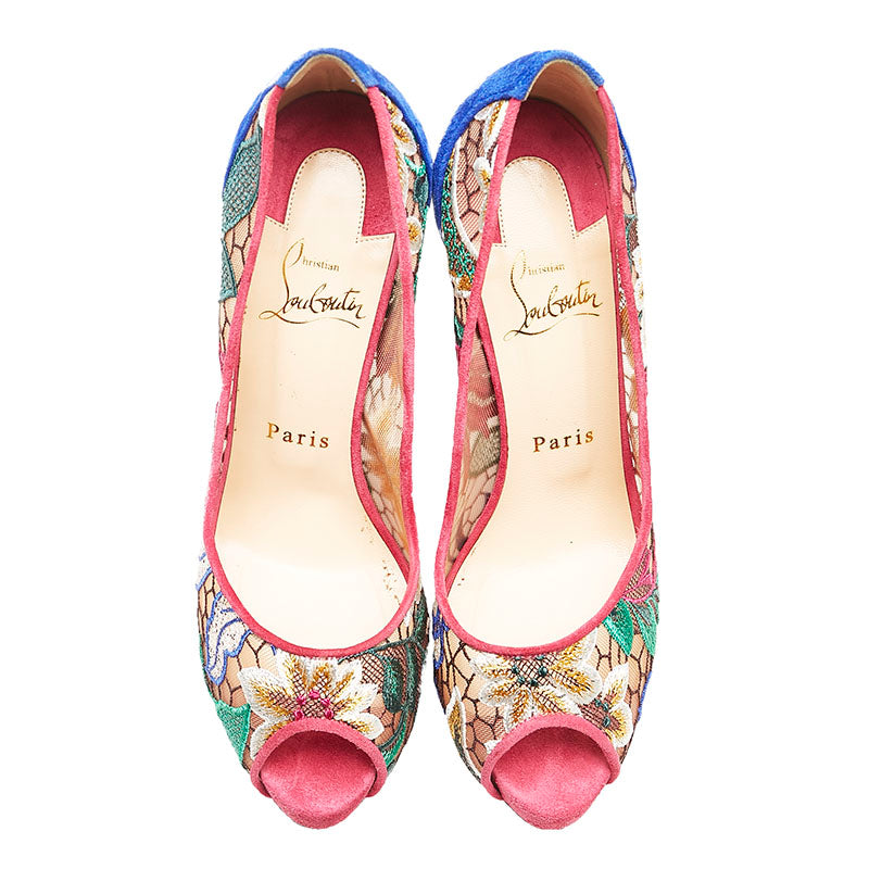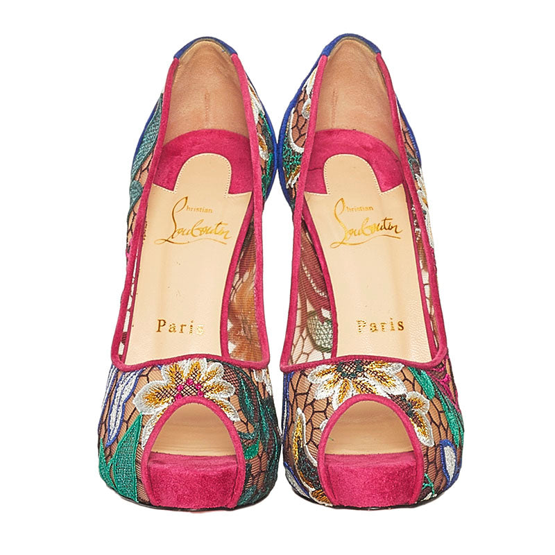 クリスチャンルブタン チュール レース 花柄 オープントゥ ピンヒール パンプス ピンク ブルー スウェード レディース Christian Louboutin 【中古】
