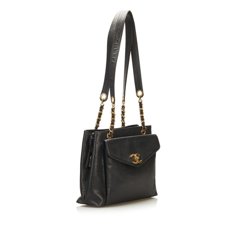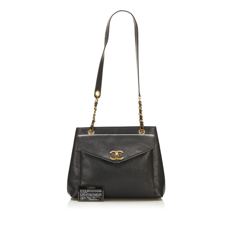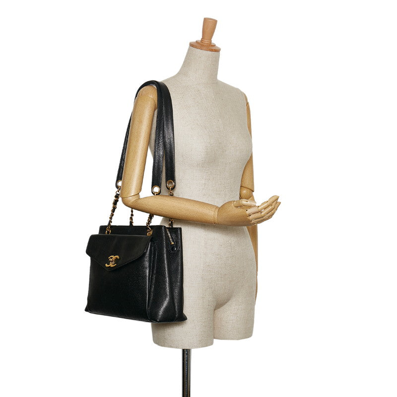 シャネル ココマーク チェーン ショルダーバッグ ブラック キャビアスキン レディース CHANEL 【中古】