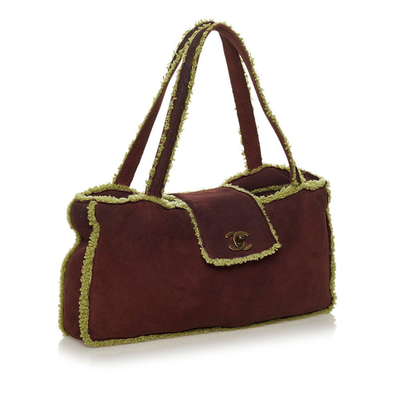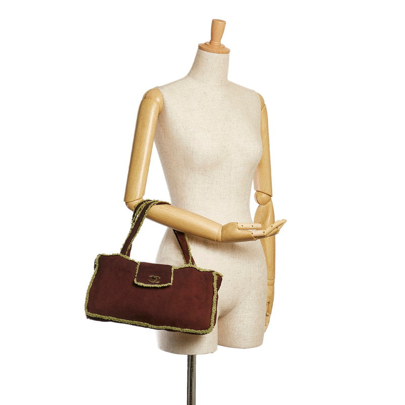 シャネル ココマーク ムートン ハンドバッグ ブラウン スウェード ウール レディース CHANEL 【中古】