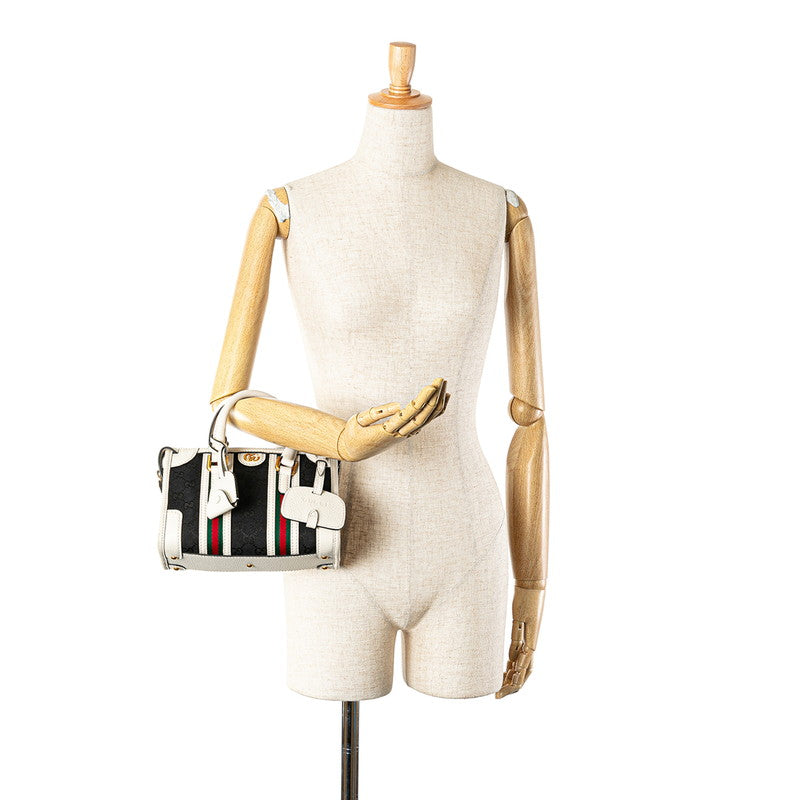 グッチ GGキャンバス オフィディア ハンドバッグ 715771 ブラック ホワイト キャンバス レザー レディース GUCCI 【中古】
