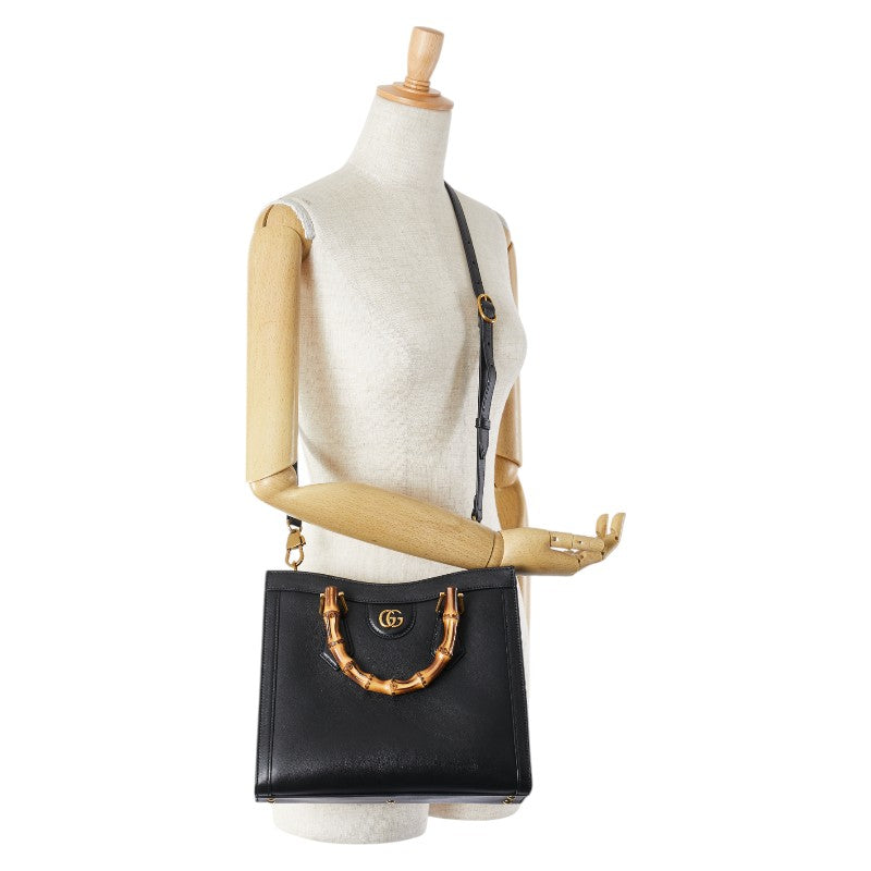 グッチ GGマーモント バンブー ハンドバッグ ショルダーバッグ 2WAY 660195 ブラック レザー レディース GUCCI 【中古】