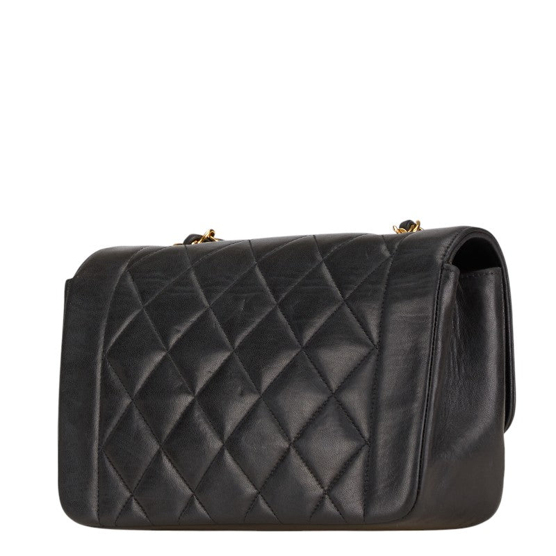 シャネル ダイアナ23 マトラッセ ココマーク ゴールド金具 チェーン ショルダーバッグ ブラック レザー レディース CHANEL 【中古】