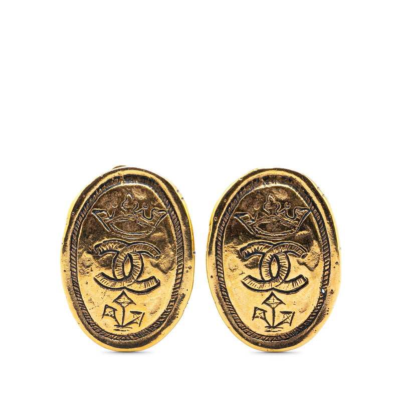 シャネル ココマーク オーバル 王冠 クラウン イヤリング ゴールド メッキ レディース CHANEL 【中古】