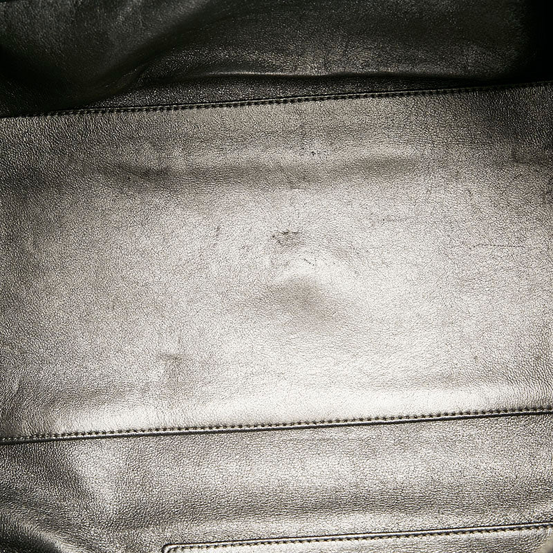 外側⇒型崩れ・スレ サイド⇒スレ・小キズ 底面⇒スレ・キズ・若干の角スレ ハンドル⇒スレ 金具⇒小キズ・若干のスレ・底鋲にスレ・小キズ 開閉口⇒スレ・線キズ 内側⇒オープンポケットのフチ側に糸取れ・切れ・全体的にスレ・小キズ・開閉口付近に黒ズミ・シワ・底部に目立つキズ・シミ・汚れ |