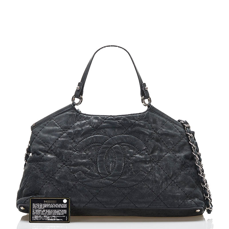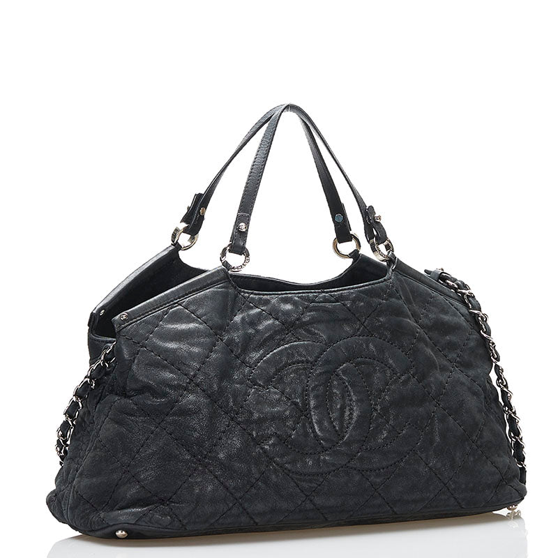シャネル ココマーク ワイルドステッチ トートバッグ チェーン ショルダーバッグ 2WAY ブラック レザー レディース CHANEL 【中古】