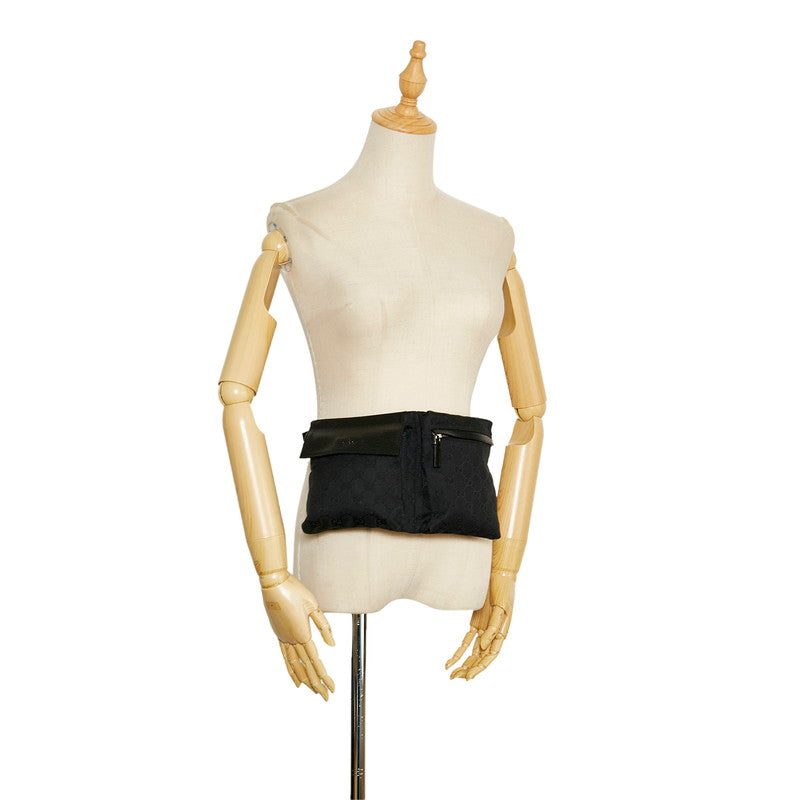 グッチ GGキャンバス ボディバッグ ウエストバッグ ショルダーバッグ 28566 ブラック キャンバス レザー メンズ GUCCI 【中古】