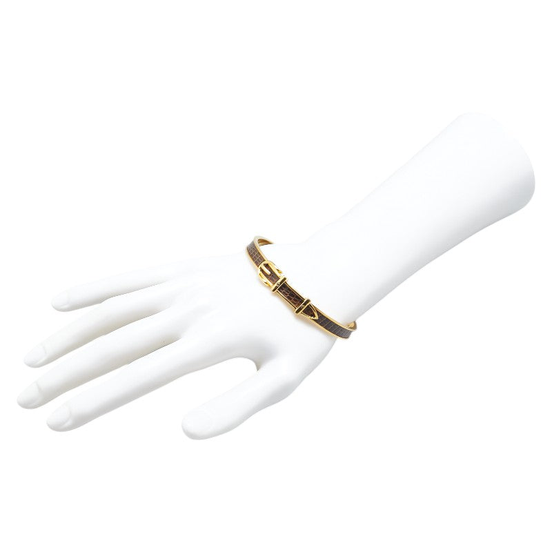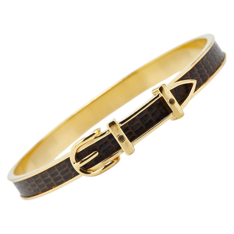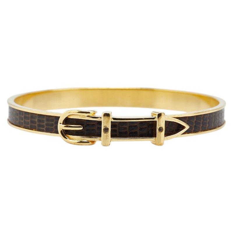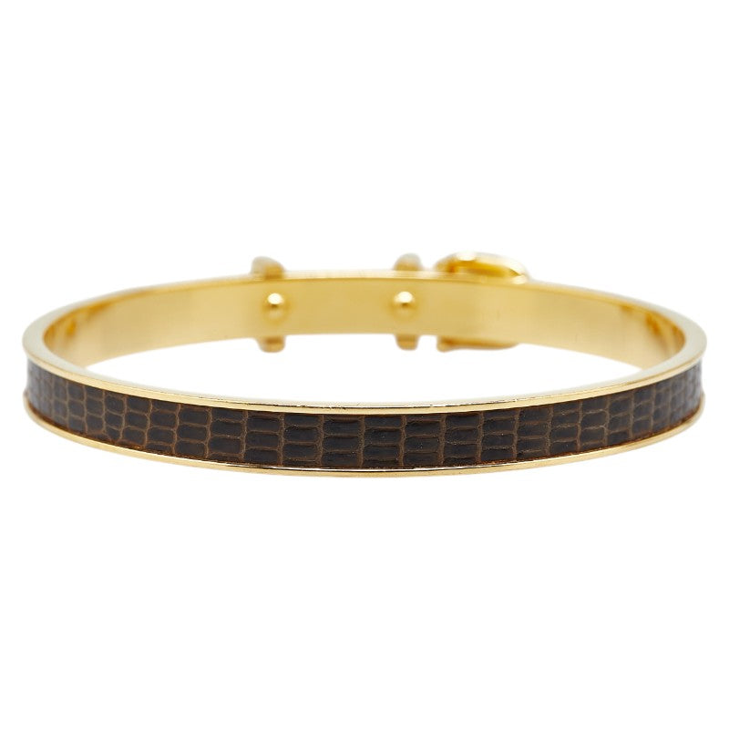 エルメス ベルト モチーフ リザード 型押し バングル ゴールド ブラウン メッキ レザー レディース HERMES 【中古】