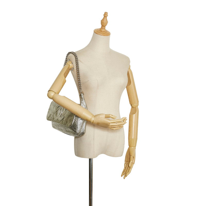 シャネル ココマーク パンチング チェーン ショルダーバッグ シルバー レザー レディース CHANEL 【中古】