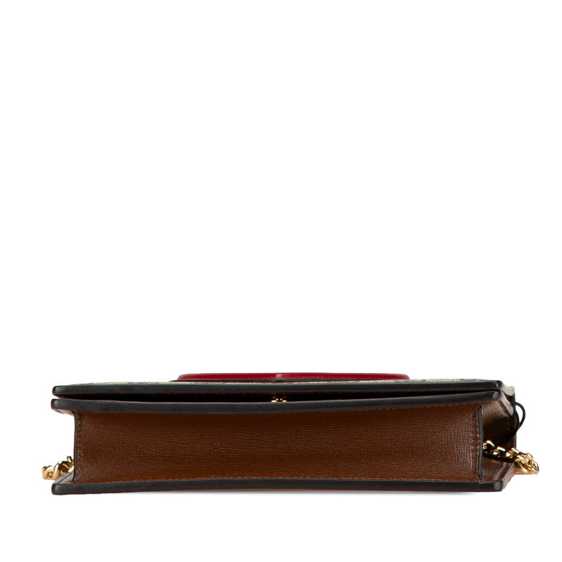 グッチ GGスプリーム ハート モチーフ チェーン ショルダーバッグ 648948 ブラウン レッド PVC レザー レディース GUCCI 【中古】