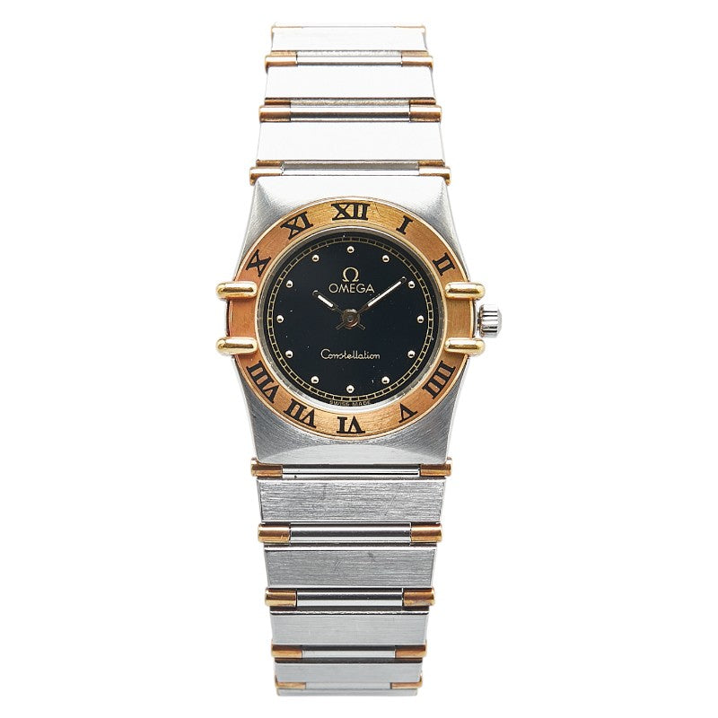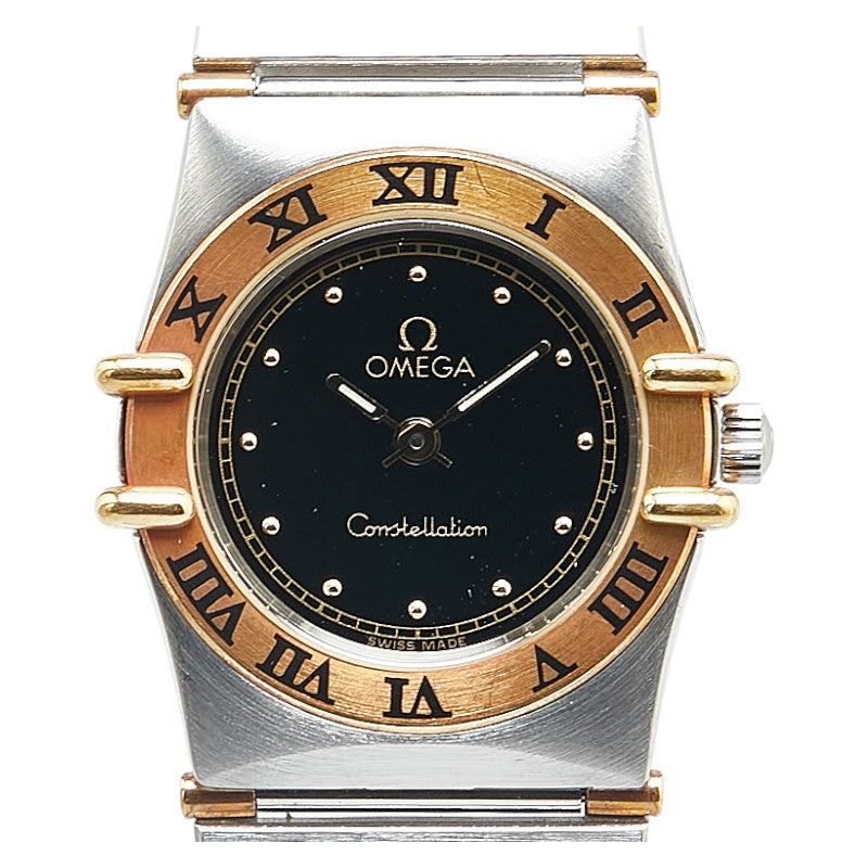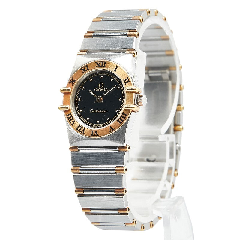 オメガ コンステレーション 腕時計 クオーツ ブラック文字盤 ステンレススチール K18YG イエローゴールド レディース OMEGA 【中古】