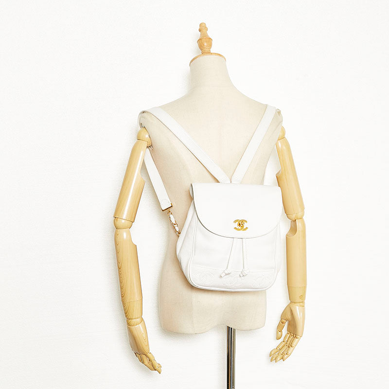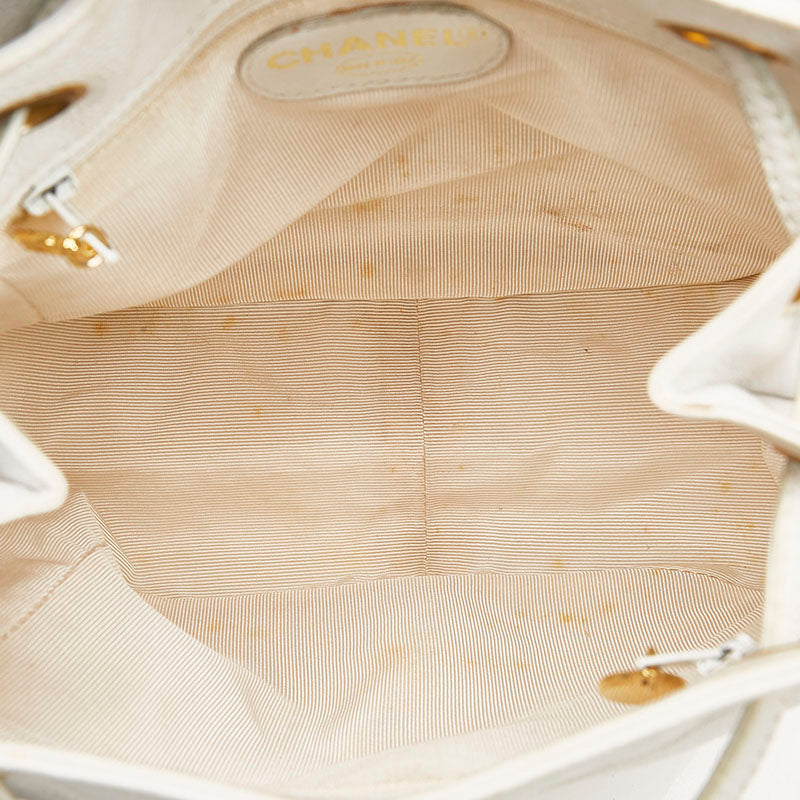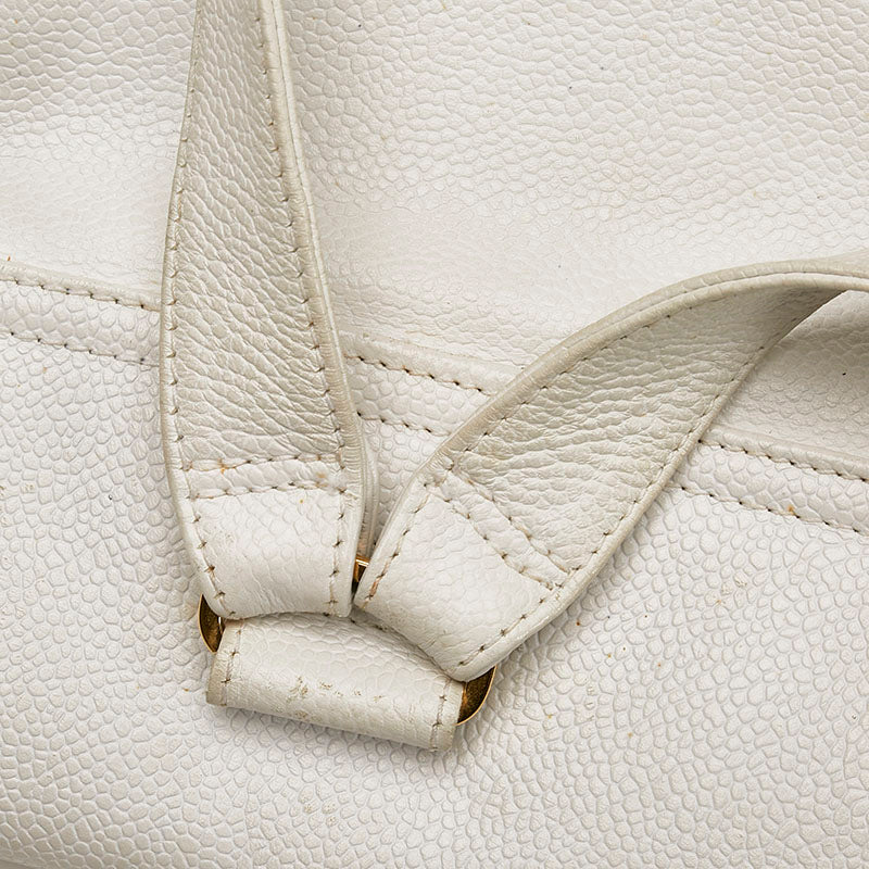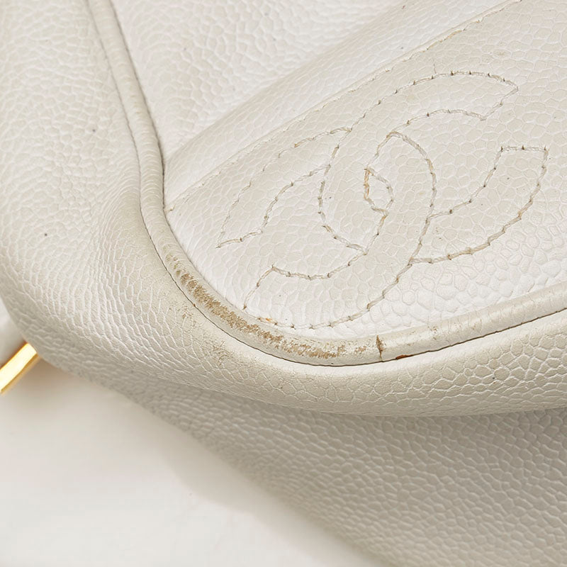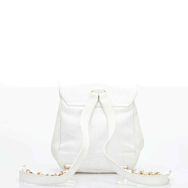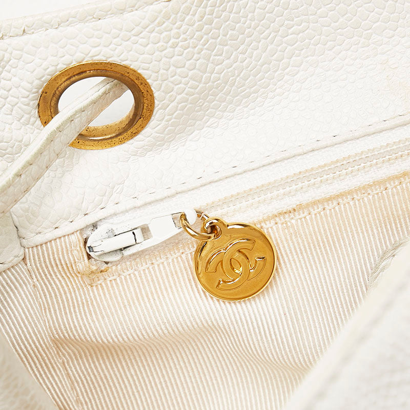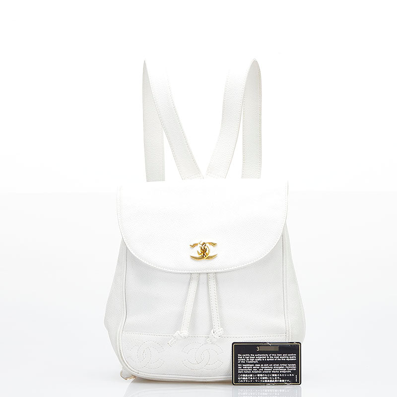 シャネル トリプル ココマーク リュック バックパック ホワイト キャビアスキン レディース CHANEL 【中古】
