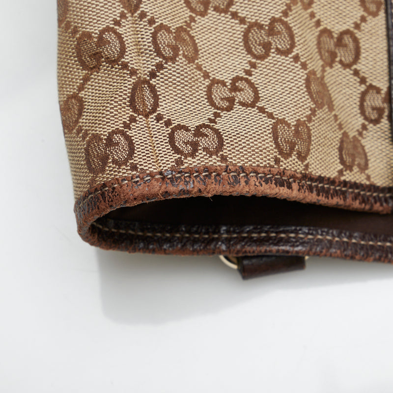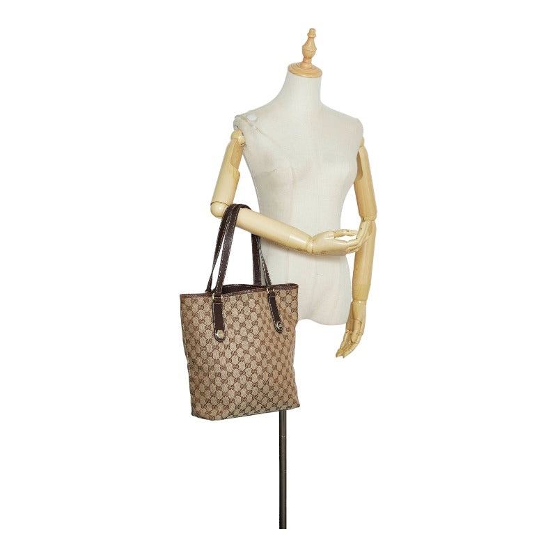 グッチ GGキャンバス ショルダーバッグ トートバッグ 153009 ベージュ ブラウン キャンバス レザー レディース GUCCI 【中古】