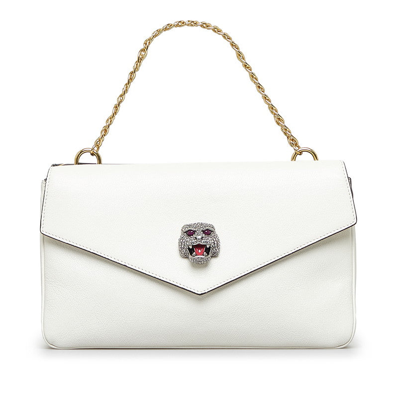 グッチ GGキャット ダブルフェイス チェーン ハンドバッグ ショルダーバッグ 2WAY 524822 ブラック ホワイト レザー レディース GUCCI 【中古】
