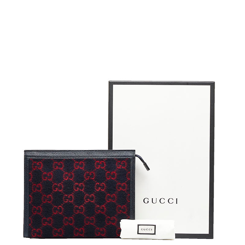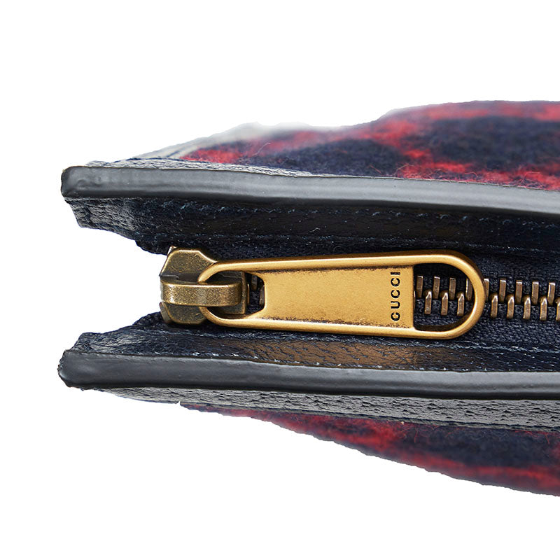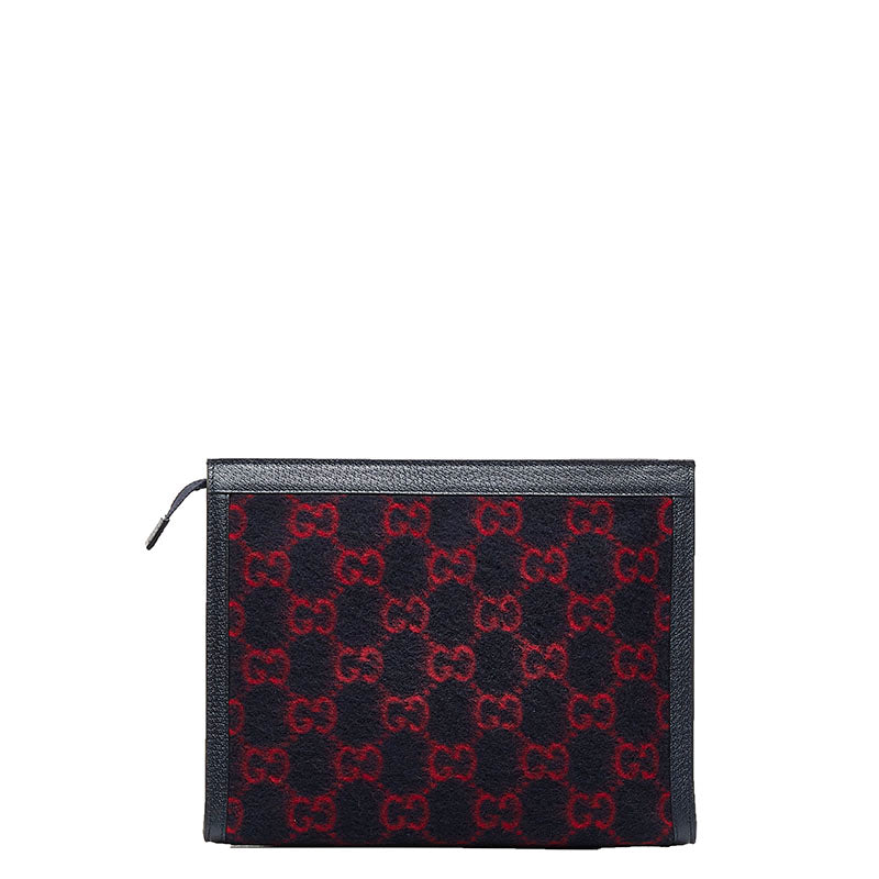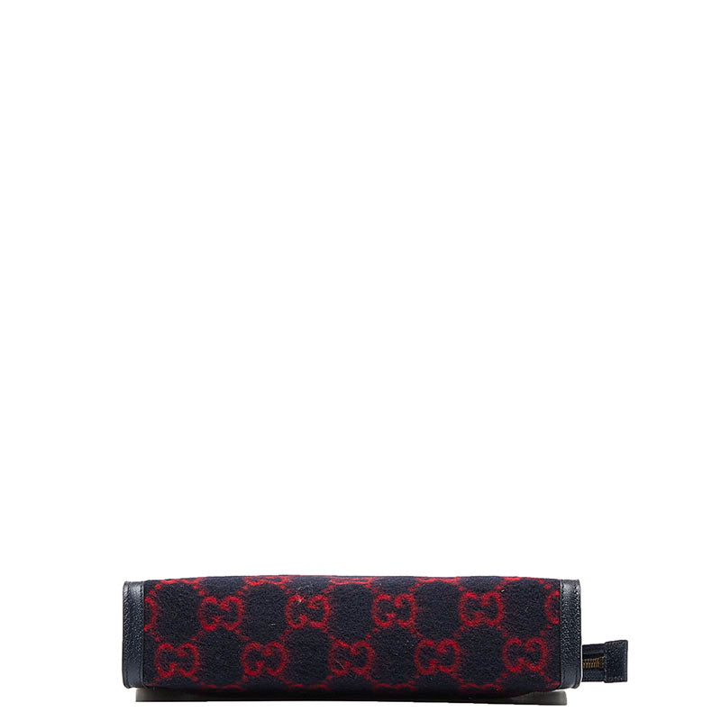 グッチ GGウールポーチ クラッチバッグ セカンドバッグ 597634 ネイビー レッド ウール レザー レディース GUCCI 【中古】