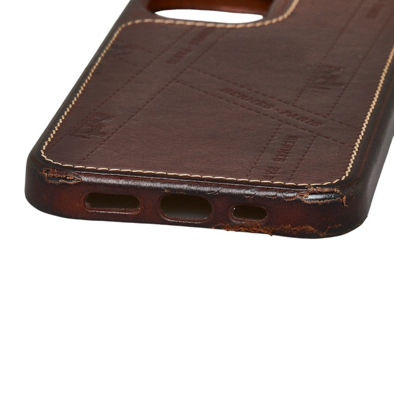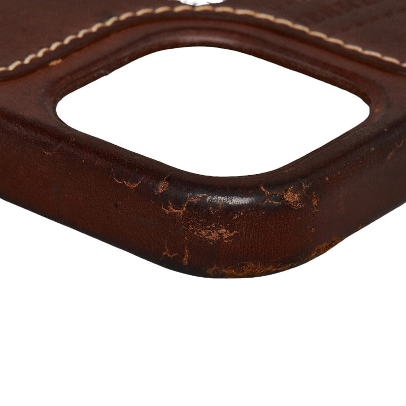 エルメス ボルデュク リボン iPhoneケース iPhone12 iPhone12Pro フォーブ ブラウン レザー レディース HERMES 【中古】